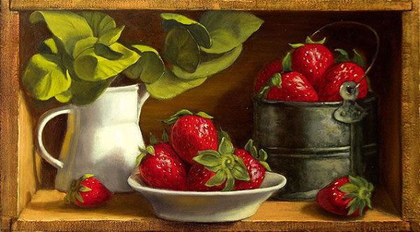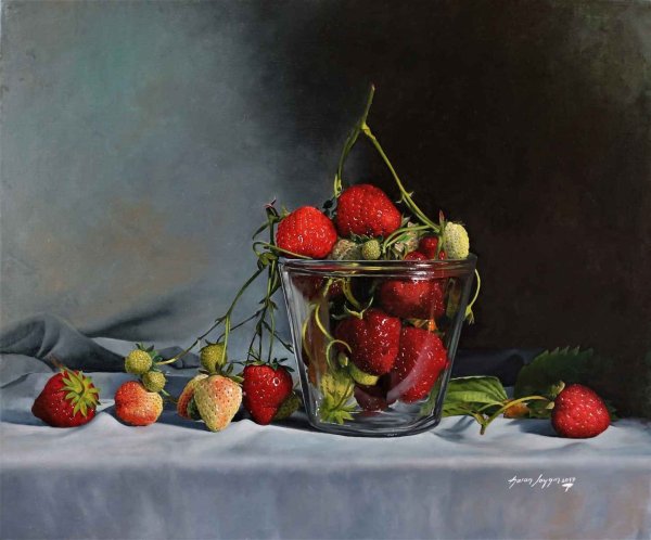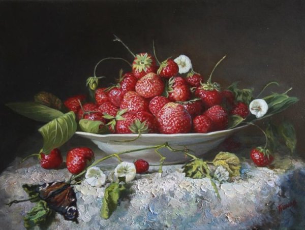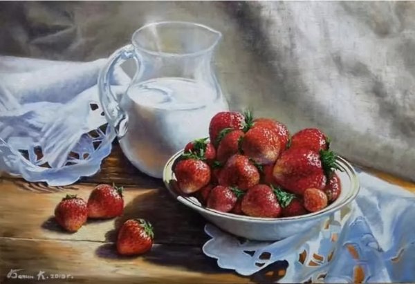 Натюрморт с клубникой - это произведение живописи, которое воссоздает красоту и нежность клубники на холсте. Это уникальное изображение ягоды, аккуратно разложенной на столе или в корзине, с прекрасными деталями и интенсивным цветом. В таких работах художник передает свежесть и сочность клубники, заставляя зрителя почувствовать ее аромат и сладость. Натюрморт с клубникой вызывает приятные воспоминания о лете, отдыхе и гастрономическом удовольствии. Это произведение искусства может быть украшением для интерьера и напоминанием о прекрасных моментах, связанных с этим ягодным деликатесом.