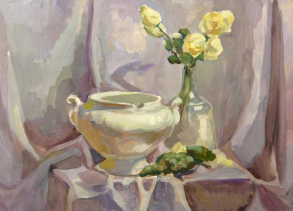 Белый натюрморт в живописи гуашью - это уникальное произведение искусства, которое захватывает взгляд своей изысканной красотой. Живопись гуашью позволяет художнику создавать яркие и насыщенные цвета, а использование белого тонирования придает работе особый эффект чистоты и свежести. Этот стиль живописи подчеркивает каждую деталь объектов, отражая их текстуры и формы с особым вниманием к деталям. Белый натюрморт гуашью становится не только прекрасным украшением интерьера, но и способом передать неповторимую атмосферу спокойствия и гармонии. Он идеально подходит для любого стиля жилища и станет великолепным акцентом в вашем пространстве, приковывая внимание и вызывая умиление своей красотой и утонченностью.