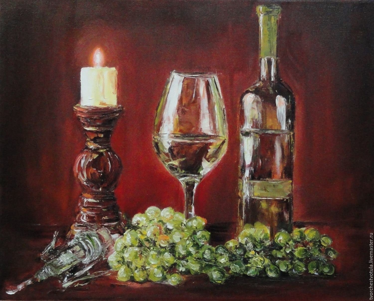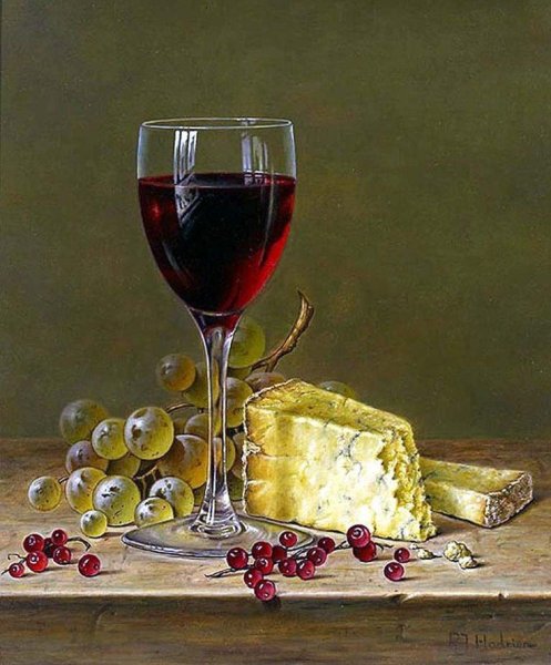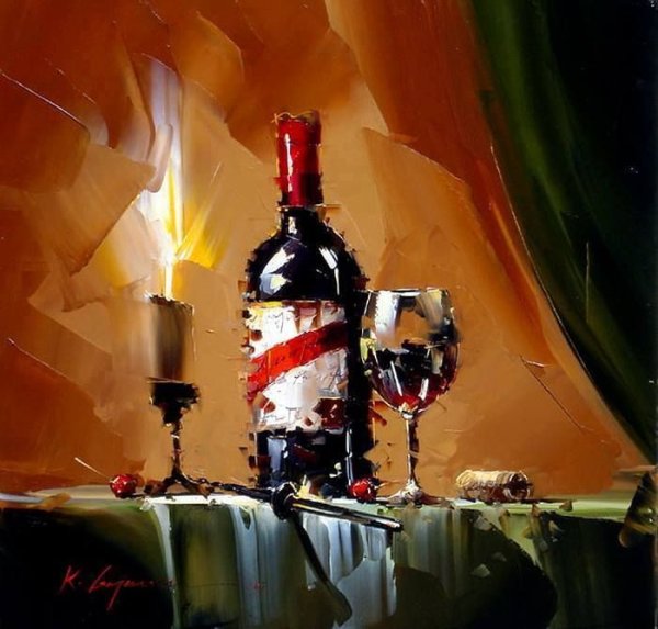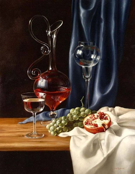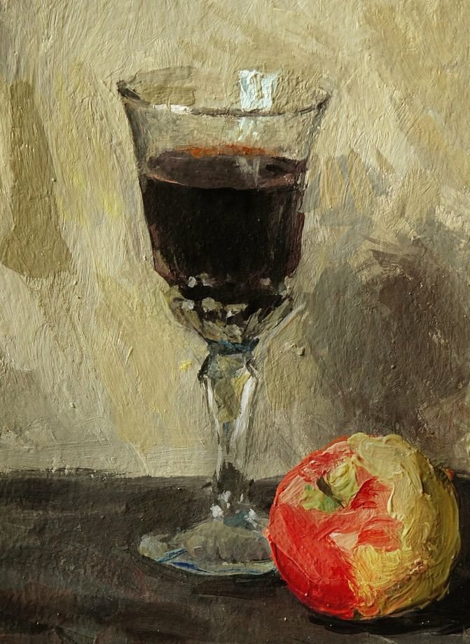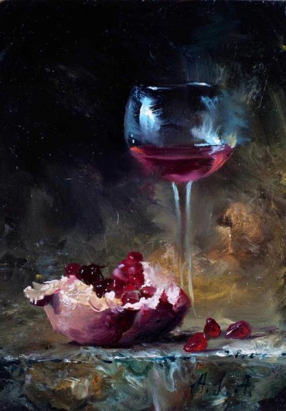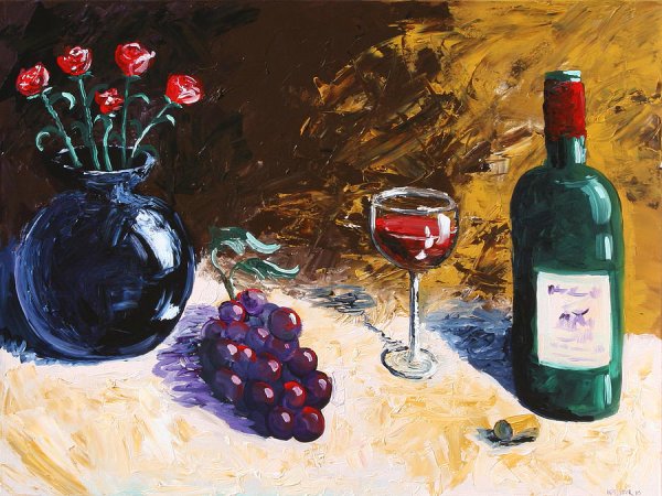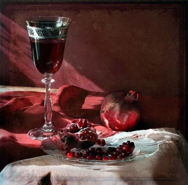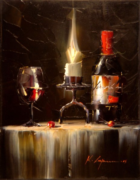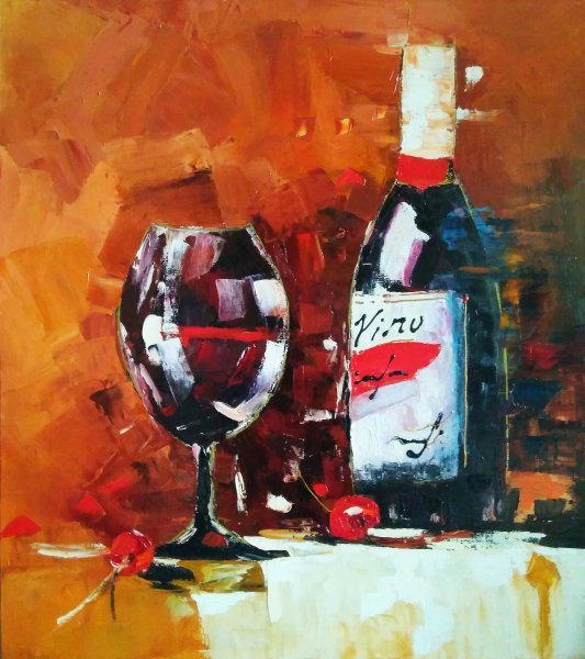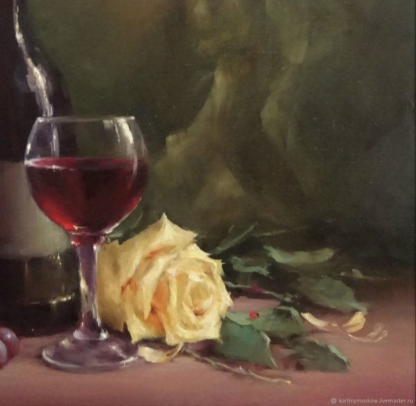 Натюрморт с бокалом вина - это произведение живописи, которое захватывает красоту и элегантность момента. На этой картине можно увидеть бокал, наполненный роскошным красным или благородным белым вином, окруженный разнообразными предметами, такими как фрукты, цветы или другие элементы, создающие атмосферу изысканности. Художник придает особое внимание деталям, воплощая на полотне игру света и тени, отражения и прозрачность, чтобы передать ощущение реальности и позволить зрителю почувствовать аромат и вкус вина, словно он сам находится перед этим натюрмортом. Это произведение идеально подойдет для тех, кто ценит изящество и хочет добавить роскоши и утонченности в свой интерьер или коллекцию искусства.