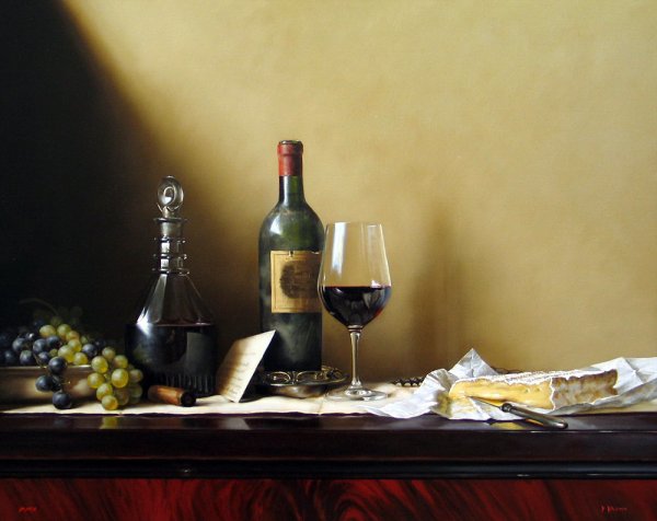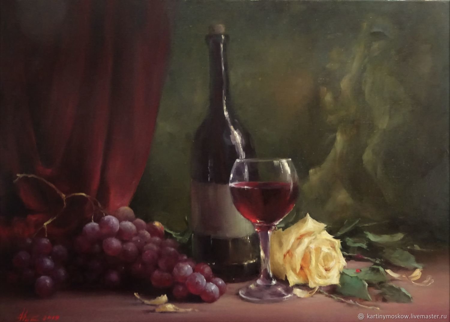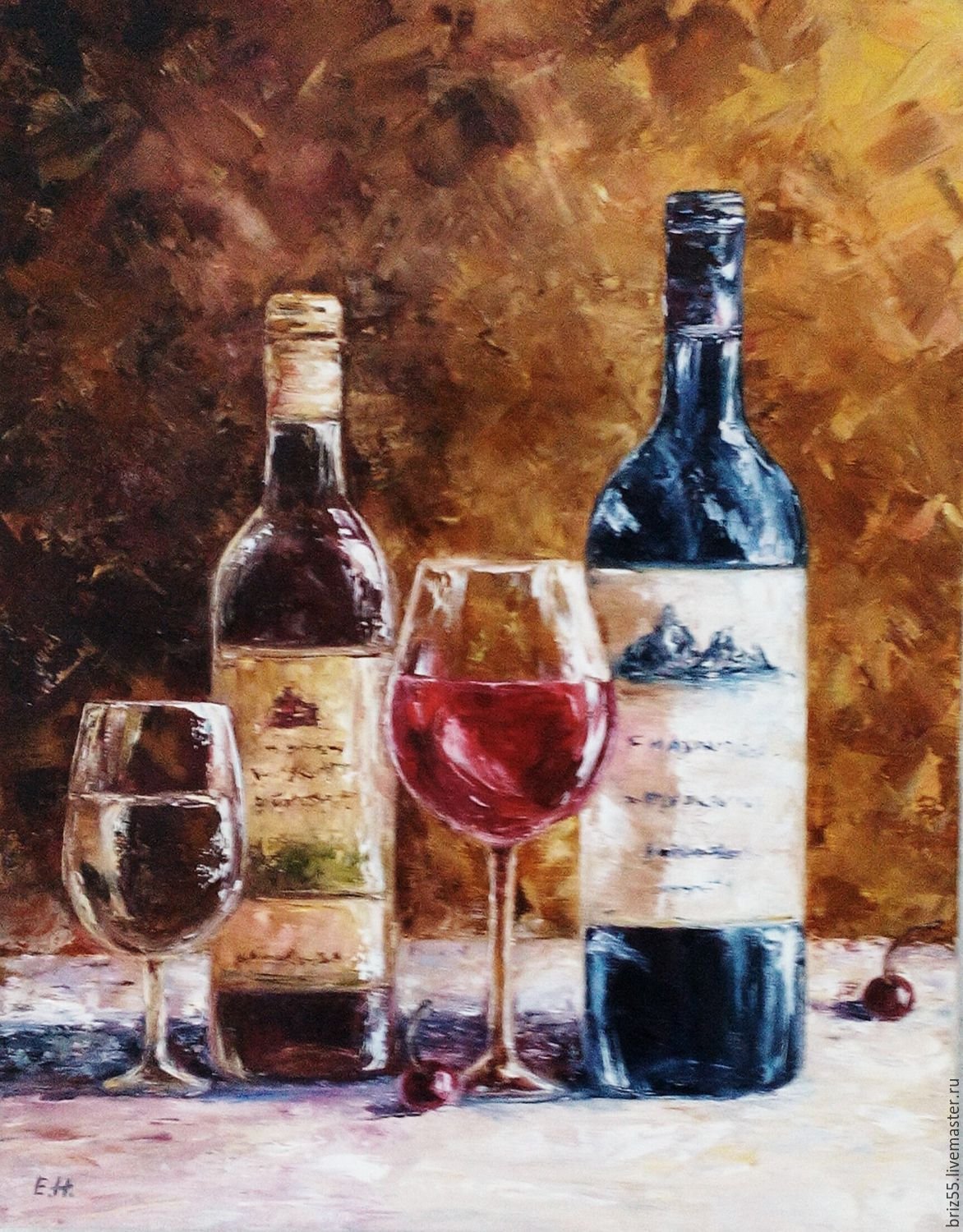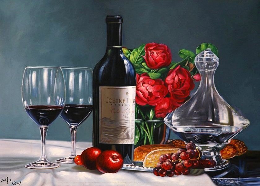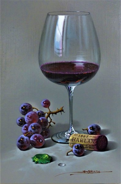 Натюрморт с бокалом вина - это произведение живописи, которое захватывает красоту и элегантность момента. На этой картине можно увидеть бокал, наполненный роскошным красным или благородным белым вином, окруженный разнообразными предметами, такими как фрукты, цветы или другие элементы, создающие атмосферу изысканности. Художник придает особое внимание деталям, воплощая на полотне игру света и тени, отражения и прозрачность, чтобы передать ощущение реальности и позволить зрителю почувствовать аромат и вкус вина, словно он сам находится перед этим натюрмортом. Это произведение идеально подойдет для тех, кто ценит изящество и хочет добавить роскоши и утонченности в свой интерьер или коллекцию искусства.