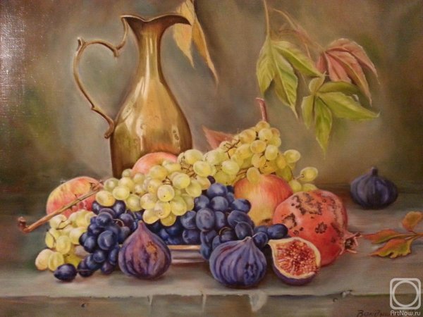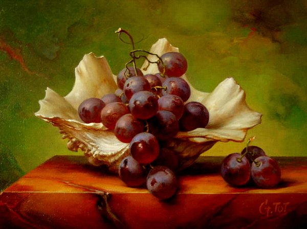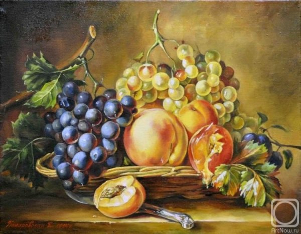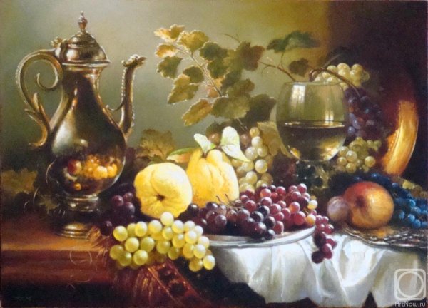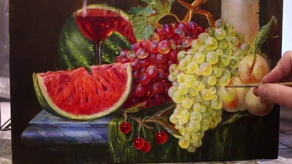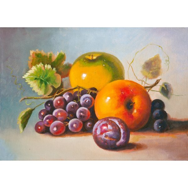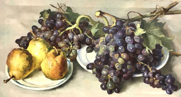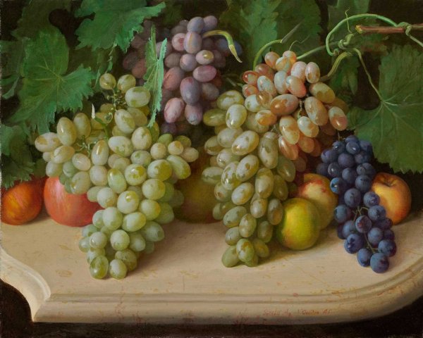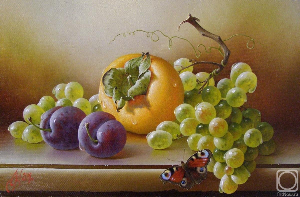 Живопись маслом натюрморт с виноградом - это произведение искусства, которое привлекает своей красотой и эстетикой. В этом натюрморте художник передает нежность и изящество виноградных гроздей, а также их насыщенность и яркость цветов. Каждая ягода отображается с большой детализацией, сохраняя свою оригинальность и естественность. Благодаря использованию масляных красок, работа приобретает глубину и объемность, создавая реалистический эффект. Этот натюрморт с виноградом станет прекрасным украшением для интерьера и подарком для ценителей искусства.