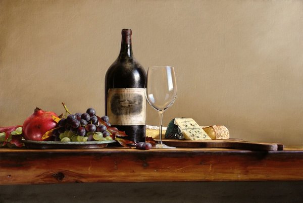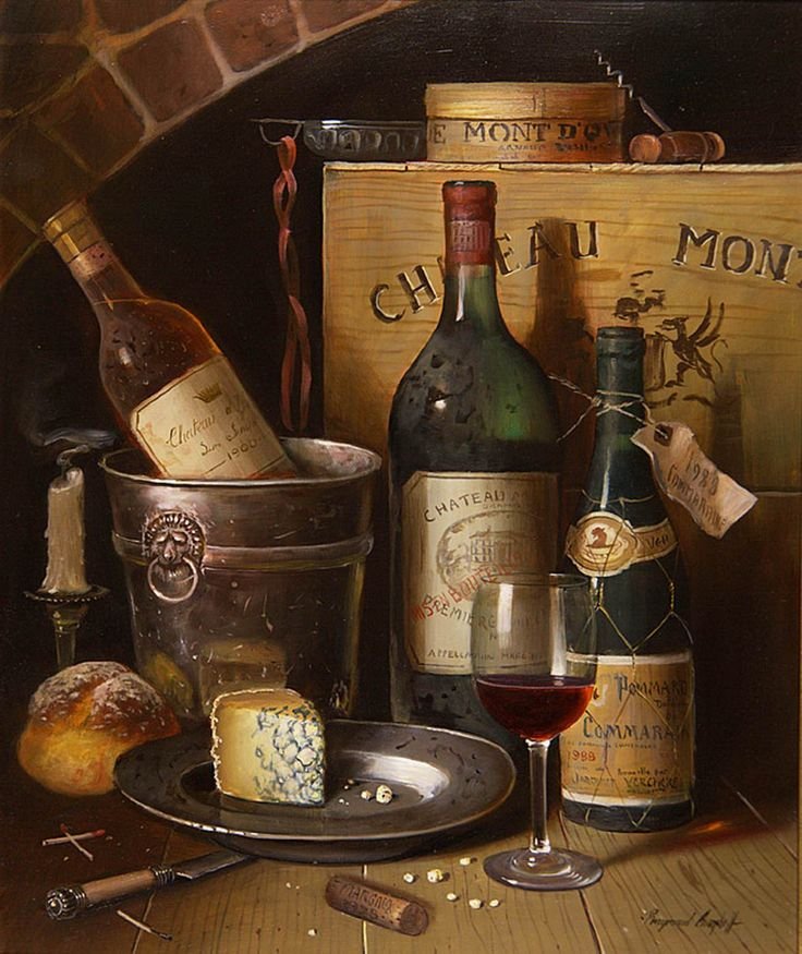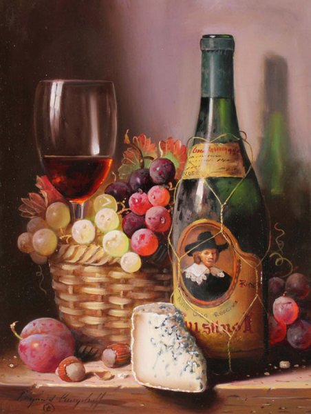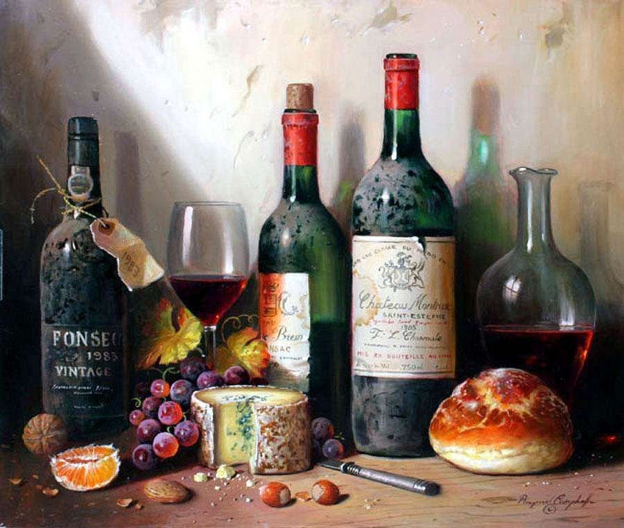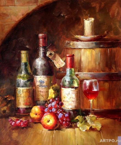 Натюрморт с бутылкой вина - это классическая и популярная тема в живописи, которая привлекает внимание своей элегантностью и изысканностью. Этот жанр искусства представляет собой изображение различных предметов, таких как фрукты, цветы, посуда, а главным акцентом часто является стильно оформленная бутылка с вином. При создании натюрморта с бутылкой вина художник стремится передать не только внешнюю красоту и детали предметов, но и вызвать у зрителя эмоциональный отклик на ассоциации с традицией, романтизмом или приятными вечерами в кругу друзей. В зависимости от стиля и мастерства художника, натюрморт с бутылкой вина может быть выполнен в реалистичной, импрессионистической или сюрреалистической манере, каждый раз создавая уникальное и захватывающее впечатление.