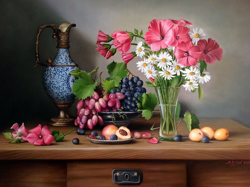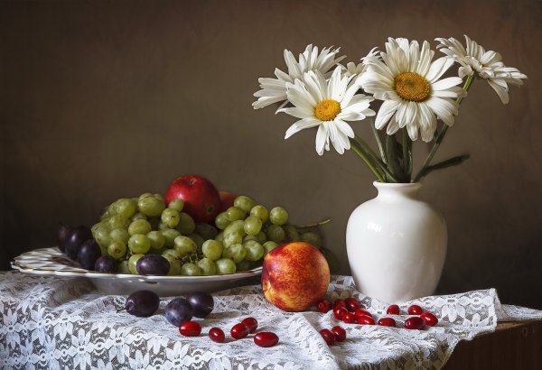 Погрузитесь в мир ярких красок и изысканной атмосферы с натюрмортом, олицетворяющим красоту природы. Это произведение искусства, выполненное с особым мастерством, сочетает в себе цветы и фрукты, создавая уникальную гармонию. Яркие букеты цветов привносят свежесть и живость, а сочные фрукты придают картине еще больше изысканности. Каждая деталь тщательно проработана, отражая уникальность и разнообразие природы. Натюрморт с цветами и фруктами – это не только красота, но и символизм, который позволяет зрителю заглянуть в самое сердце природы и насладиться ее великолепием. Это произведение искусства станет прекрасным украшением вашего интерьера, подчеркивая вашу изысканность и вкус.