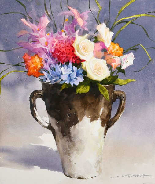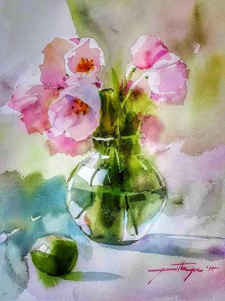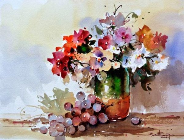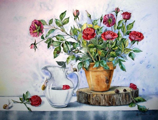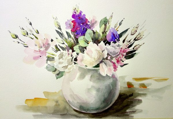 Представьте себе натюрморт, в котором красота цветов передана с помощью акварели. Используя свои навыки и талант художника, художник создает картину, которая захватывает взгляд своей живостью и яркостью. Каждый цветок на этой картине тщательно проработан до мельчайших деталей, отражая его уникальность и изящество. Нежные лепестки роз, элегантные тюльпаны и яркие гвоздики превращаются в прекрасное зрелище, оживая на холсте. Цвета акварели наполняют картину энергией и эмоциями, позволяя нам почувствовать всю красоту и загадочность природы. Этот натюрморт станет ярким украшением для любого интерьера, добавляя нотку элегантности и романтики в нашу повседневную жизнь.