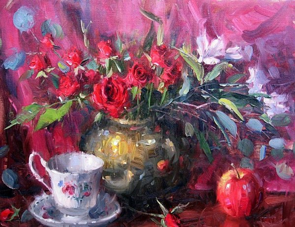 Натюрморты современных художников, выполненные масляными красками, являются уникальным и привлекательным видом искусства. В этих произведениях искусства художники оживляют обыденные объекты и предметы, создавая впечатляющие композиции, полные красок и текстур. Масляная техника позволяет художникам передать богатство и глубину цветов, добавить реалистичность и объемность к своим работам. Натюрморты маслом становятся настоящими витринами для экспозиции различных предметов и поверхностей, будь то цветы, фрукты, посуда или другие элементы быта. Они создают атмосферу тишины и спокойствия, приглашая зрителя задуматься о красоте окружающего мира и насладиться деталями, которые обычно ускользают от повседневного взгляда. Эти натюрморты не только великолепно украшают интерьер, но и являются настоящей инвестицией в изысканное искусство.