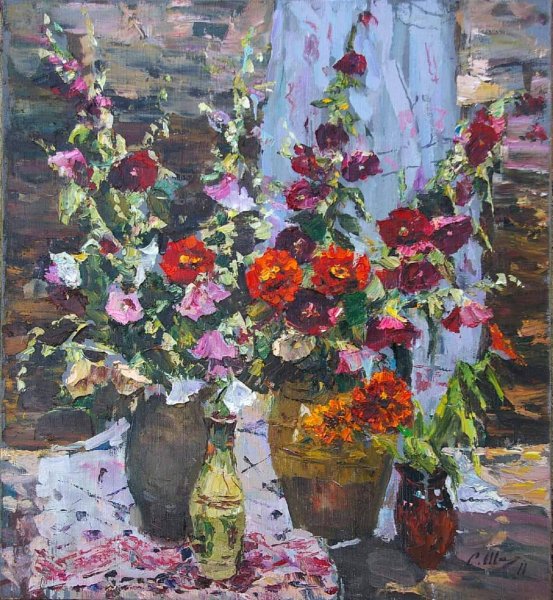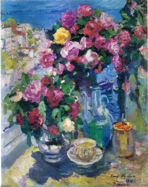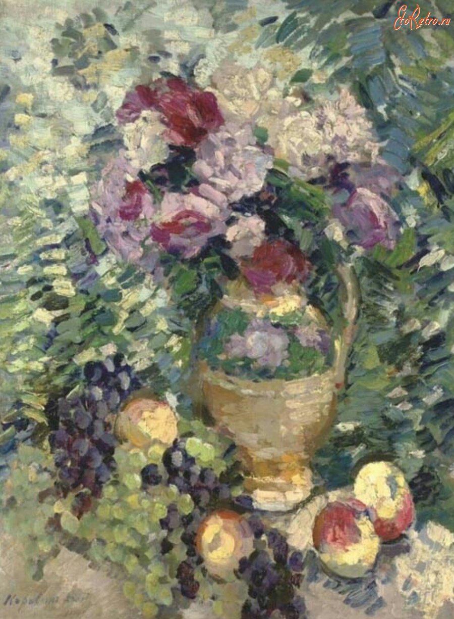 Натюрморт с цветами - произведение известного русского художника Коровина, которое восхищает своей красотой и живостью. В этой картине мастер передал нежность и изящество цветочных композиций, создавая ощущение летнего сада, полного аромата и ярких красок. Каждый цветок на холсте привлекает внимание своей уникальной формой и оттенком, позволяя зрителю окунуться в мир природы и насладиться ее богатством. Тонкая игра света и тени подчеркивает детали каждого цветка, придавая им особую глубину и объем. Натюрморт с цветами - это не только художественное произведение, но и воплощение эстетического восприятия и любви к живой природе. Эта картина станет прекрасным украшением интерьера и напоминанием о красоте окружающего мира.