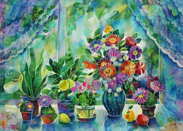 Батик натюрморт с цветами - это уникальное произведение искусства, которое сочетает в себе красоту и традиции. В этом шедевре мастер батика передает нежность и яркость цветов, создавая прекрасное сочетание оттенков и форм. Каждая кисточка и каждый штрих на ткани позволяют передать эмоции и чувства, заставляя зрителя почувствовать волшебство природы и ее богатство. Батик натюрморт с цветами - это не только украшение для интерьера, но и способ принести радость и гармонию в жизнь.