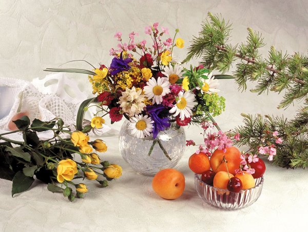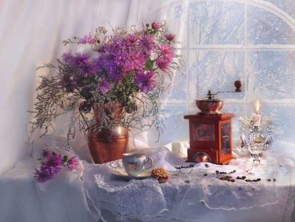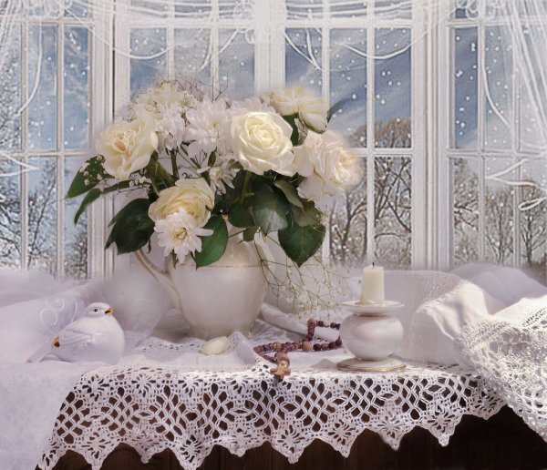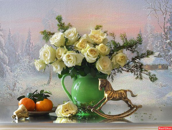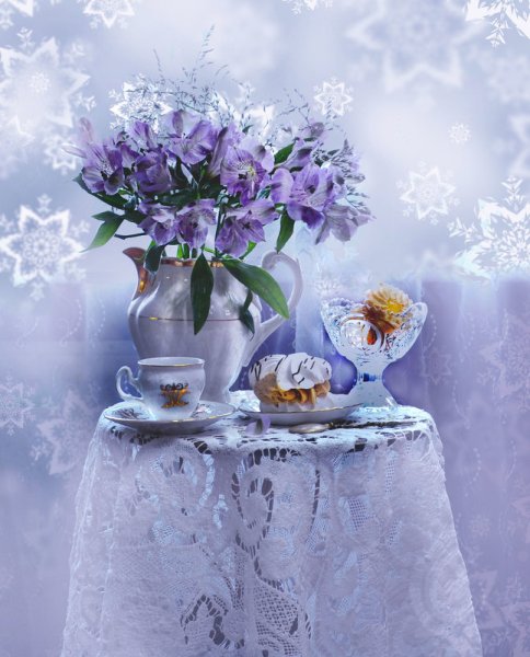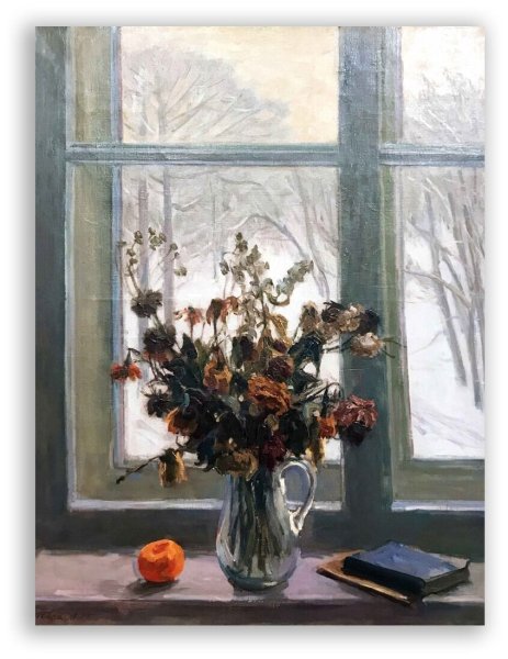 Зимний натюрморт с цветами - это великолепное произведение искусства, которое переносит нас в мир красоты и умиротворения. Холодная зимняя пейзажная атмосфера сочетается с яркостью и красочностью цветов, создавая потрясающий контраст. Каждый цветок в этом натюрморте излучает свою индивидуальность и привлекательность, будто они приносят радость и тепло в холодные зимние дни. Уникальное сочетание оттенков и форм создает гармоничный образ, который не оставит равнодушными ценителей искусства. Зимний натюрморт с цветами - это настоящая сказка, которая подарит эстетическое удовольствие и восхищение своей красотой.