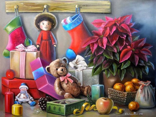 Новогодний натюрморт картины художников - это уникальное и живописное изображение, которое передает атмосферу праздника и радости. Каждый элемент на полотне, будь то гирлянды, елочные игрушки или новогодние подарки, детально прорисован с помощью мастерства и таланта художника. Яркие цвета и переливающиеся оттенки создают впечатление праздничной иллюзии, перенося нас в мир волшебства и радости. Новогодний натюрморт картины художников можно увидеть и ощутить эмоциональную гармонию, которую только праздник может принести. Это произведение искусства способно вдохновить нас и напомнить о волшебстве, которое каждый из нас испытывает во время новогодних праздников.
