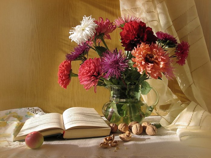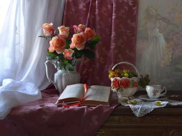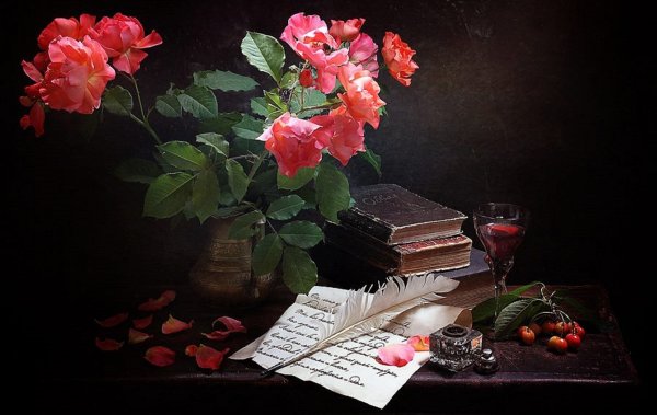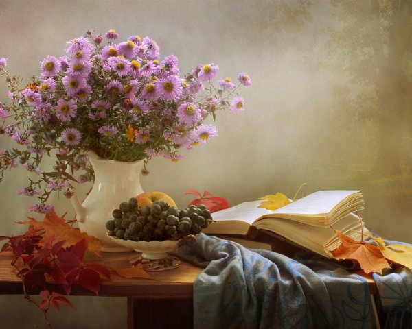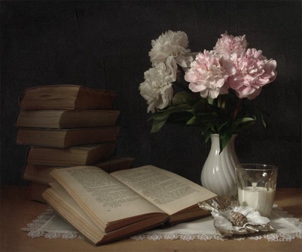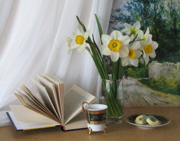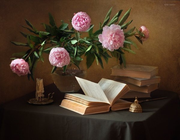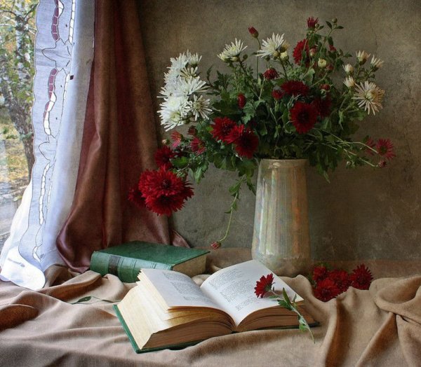 Натюрморт с цветами и книгой - это изящная композиция, которая приносит в дом атмосферу умиротворения и эстетического наслаждения. Цветы, расположенные рядом с книгой, создают ощущение естественности и живого образа. Они являются ярким символом природной красоты и символизируют жизненный рост и развитие. Книга же, помещенная в натюрморт, символизирует мудрость, знания и интеллект. Вместе эти два элемента создают гармоничное сочетание, которое привлекает внимание и вызывает положительные эмоции. Натюрморт с цветами и книгой является не только декоративным элементом интерьера, но и напоминанием о значимости природы и образования в нашей жизни.