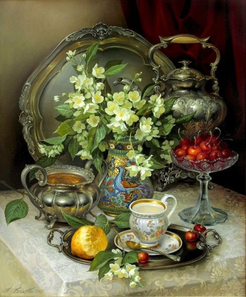 Дмитрий Власов - известный художник, специализирующийся на жанре натюрморта. Его работы привлекают внимание своей выразительностью и тонкостью передачи деталей. Каждый натюрморт Власова является уникальным произведением искусства, в котором он использует различные объекты - цветы, фрукты, посуду и другие предметы, чтобы создать эффектное композиционное решение. Художник с легкостью передает настроение и атмосферу каждого изображаемого объекта, делая его живым и осязаемым. Натюрморты Дмитрия Власова поражают своей красотой и техническим мастерством, и станут прекрасным украшением интерьера для ценителей искусства.