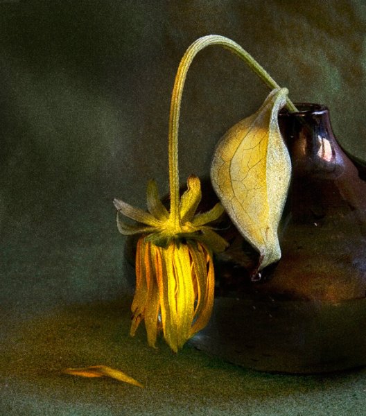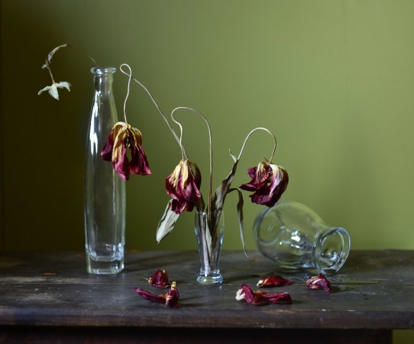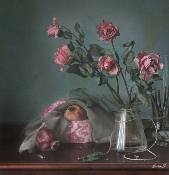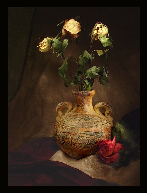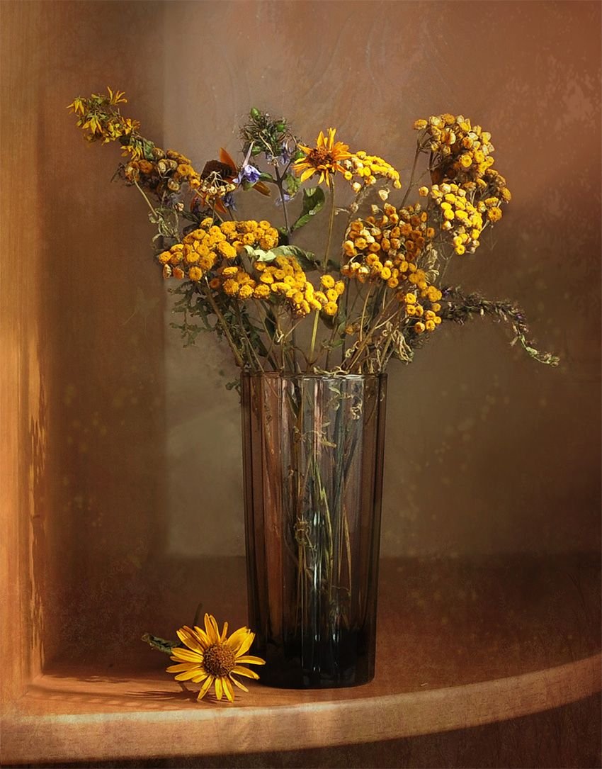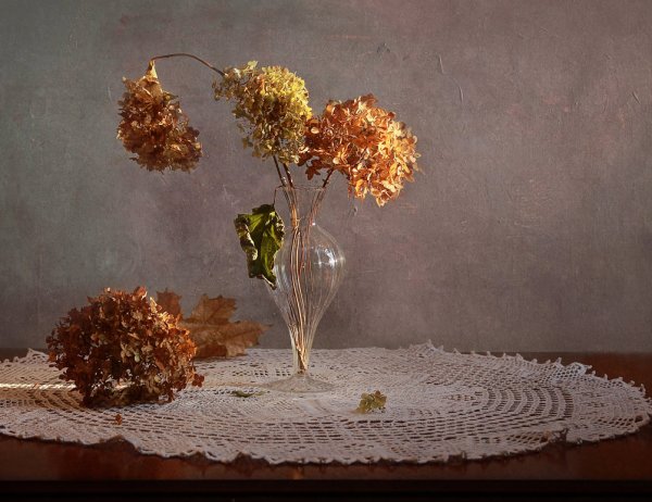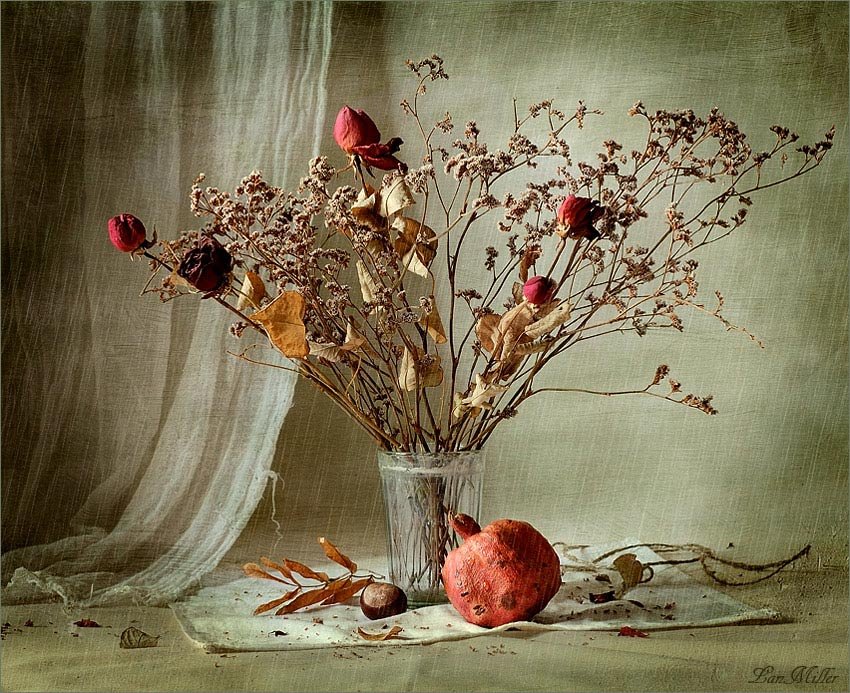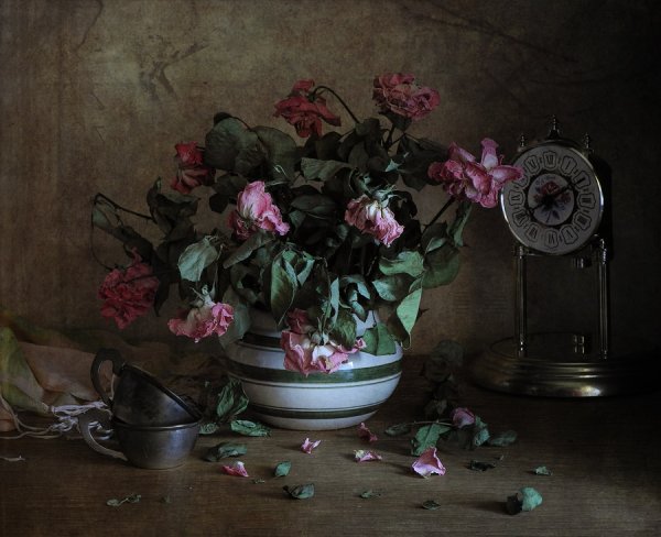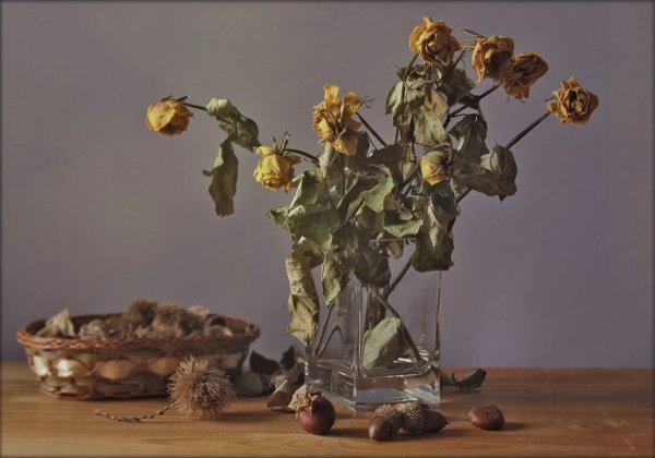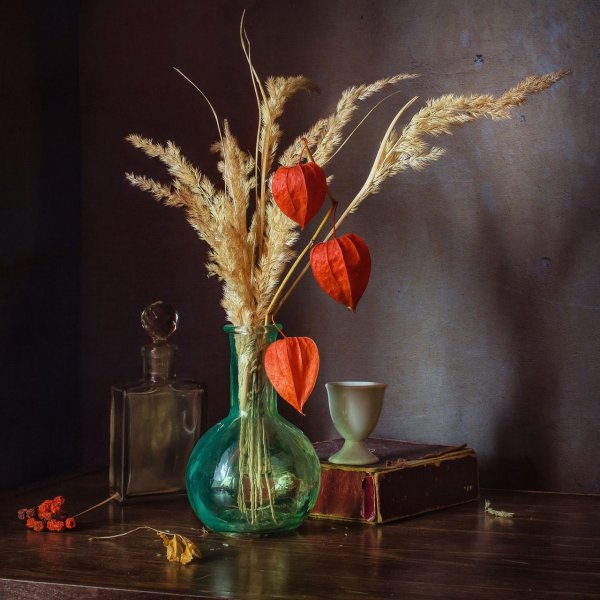 Натюрморт с засохшими цветами - это произведение искусства, которое передает особую атмосферу умиротворения и меланхолии. В таком натюрморте мы видим цветы, уже не свежие и прекрасные, но именно в этой их запахшей и увядшей красоте мы находим скрытую глубину и символичность. Засохшие лепестки и подвянувшие стебли напоминают нам о преходящей природе времени, о том, что все красивое и живое неизбежно умирает. Но даже в этом процессе художник находит красоту, воплощая ее на полотне. Через натюрморт с засохшими цветами, мы можем погрузиться в раздумья о жизни и смерти, о ее бегстве и значимости каждого мгновения.