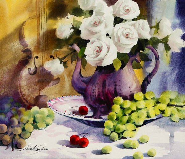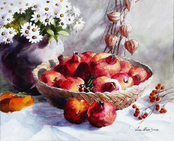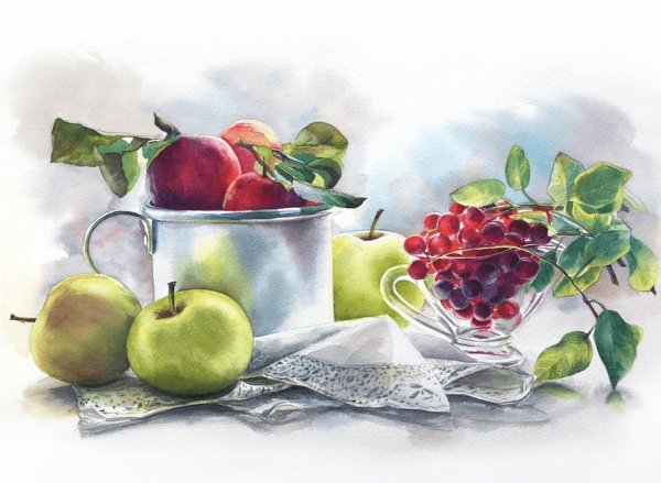 Представьте себе великолепный натюрморт, созданный мастером акварельной живописи. Это произведение искусства переносит нас в атмосферу красоты и изящества, объединяя в себе цветы и фрукты. Яркие и сочные оттенки цветов, захватывающие детали лепестков и листьев, создают ощущение жизни и привлекательности. В то же время, свежие и аппетитные фрукты вызывают желание погрузиться в их аромат и вкус. Композиция натюрморта словно оживает на бумаге, передавая энергию и эмоции, которые автор хотел передать своим зрителям. Натюрморт акварелью, изображающий цветы и фрукты, является источником вдохновения и радости для любителей искусства.