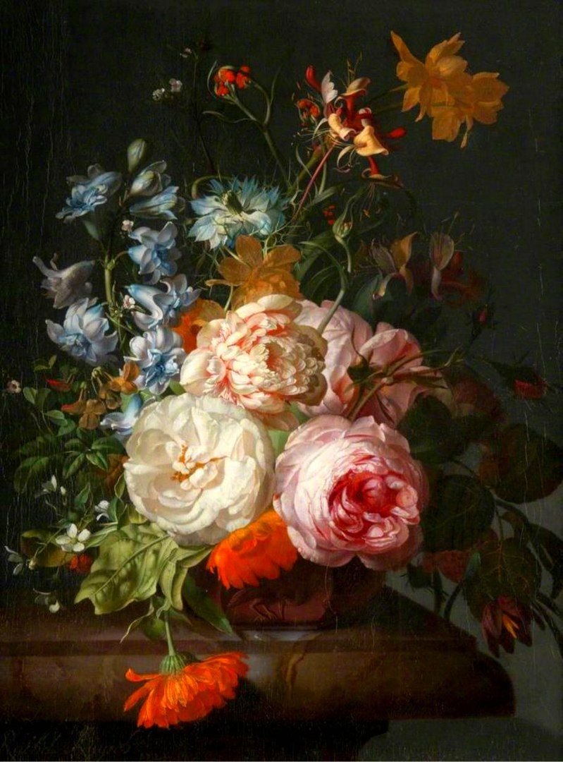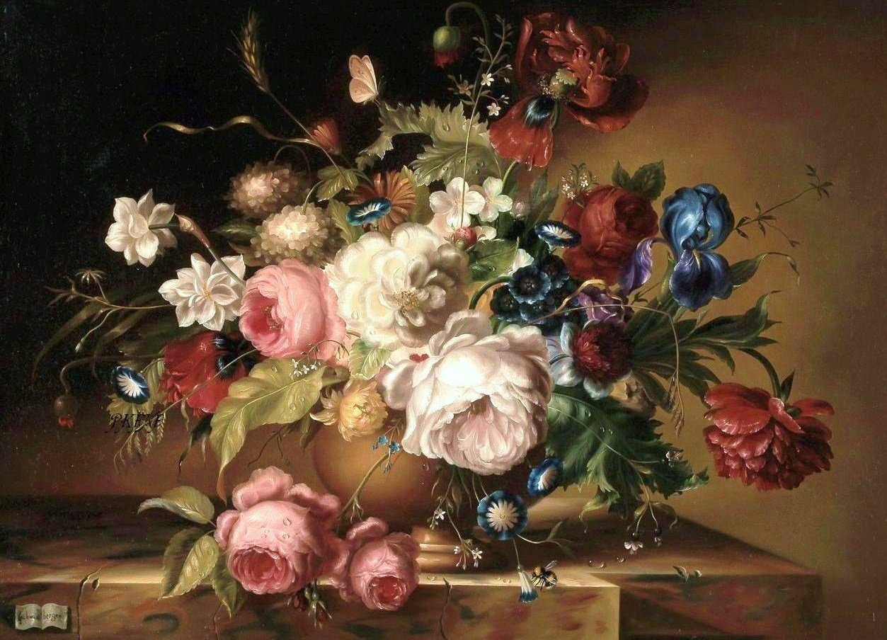 Натюрморт с цветами барокко - это произведение искусства, которое отражает характерные особенности барочного стиля. Оно представляет собой композицию из различных цветов, расположенных великолепно и изысканно. Яркие и насыщенные оттенки цветов создают ощущение роскоши и изобилия. Композиция натюрморта с цветами барокко часто включает в себя такие элементы, как фрукты, украшения и драгоценные камни, чтобы подчеркнуть роскошь и благородство. Это произведение искусства позволяет окунуться в атмосферу эпохи барокко и насладиться его изысканностью и экстравагантностью. Натюрморт с цветами барокко является прекрасным дополнением для интерьера, добавляя ему элегантности и роскоши.