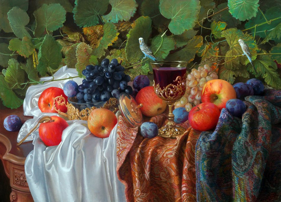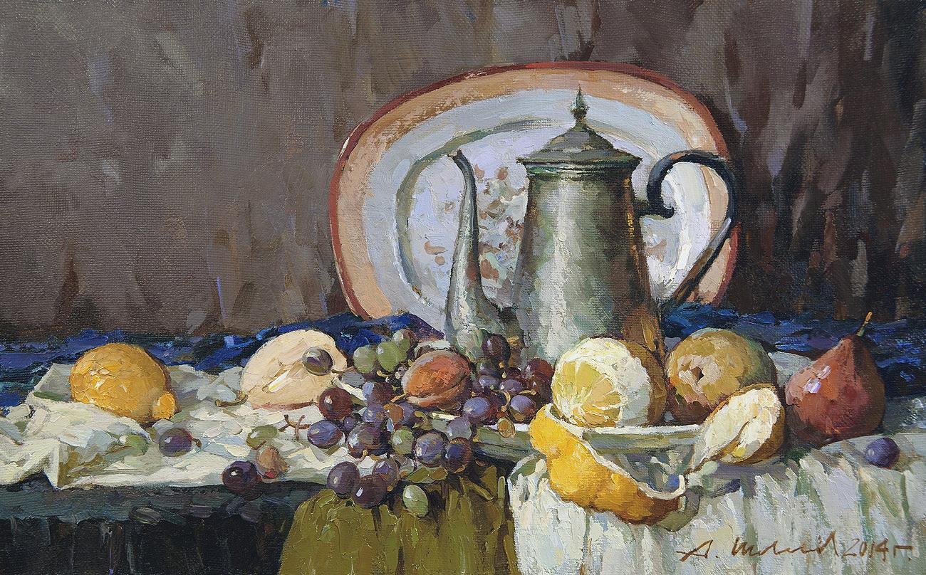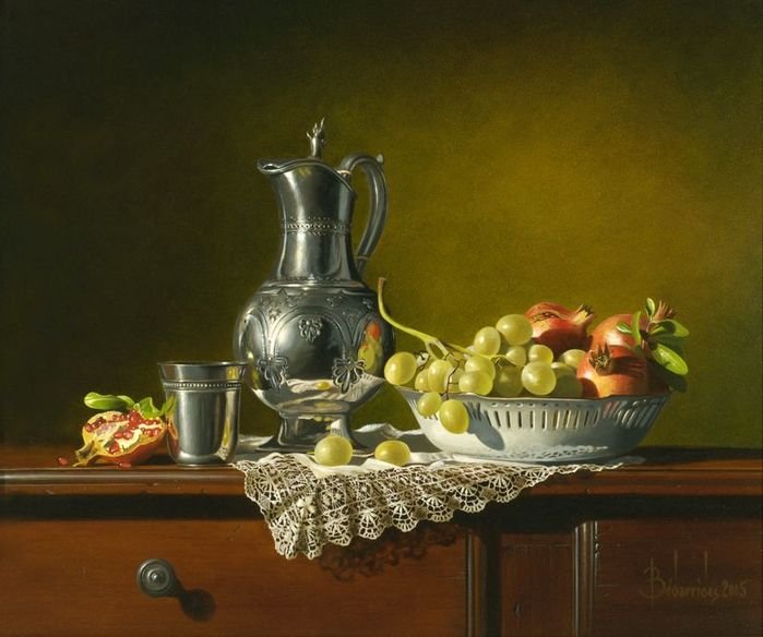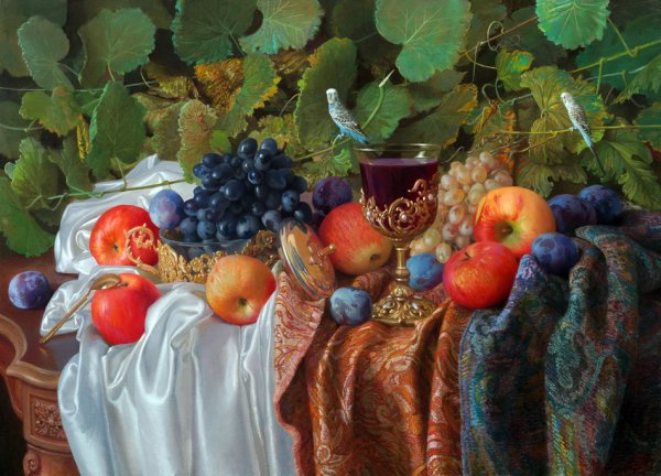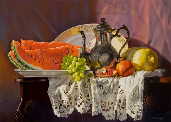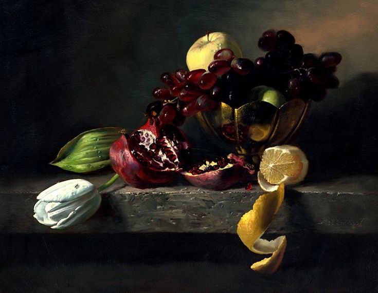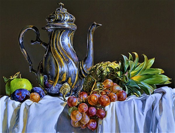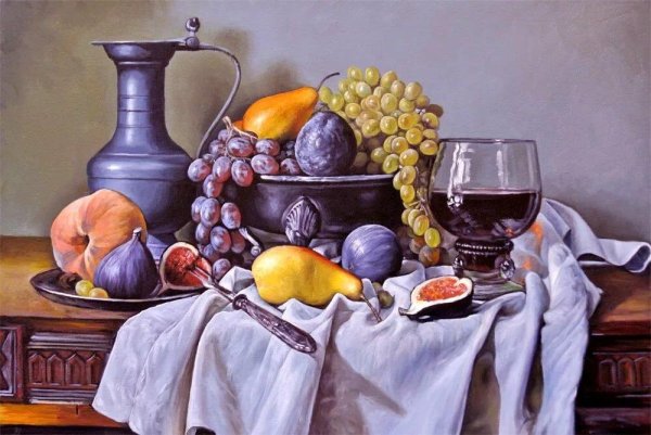 Натюрморт - это жанр живописи, который акцентирует внимание на изображении предметов, как правило, неживой природы. Реалистичные натюрморты известных художников обладают особым очарованием и мастерством передачи деталей и оттенков каждого объекта. Каждая кисть мастера превращает обычные предметы, такие как фрукты, цветы, столовые принадлежности или инструменты, в объекты искусства. Благодаря искусству реалистического натюрморта мы можем насладиться непосредственной красотой и атмосферой каждого изображения, ощутить их реальность и погрузиться в уникальный мир, созданный талантливыми художниками.
