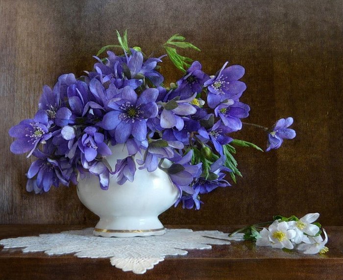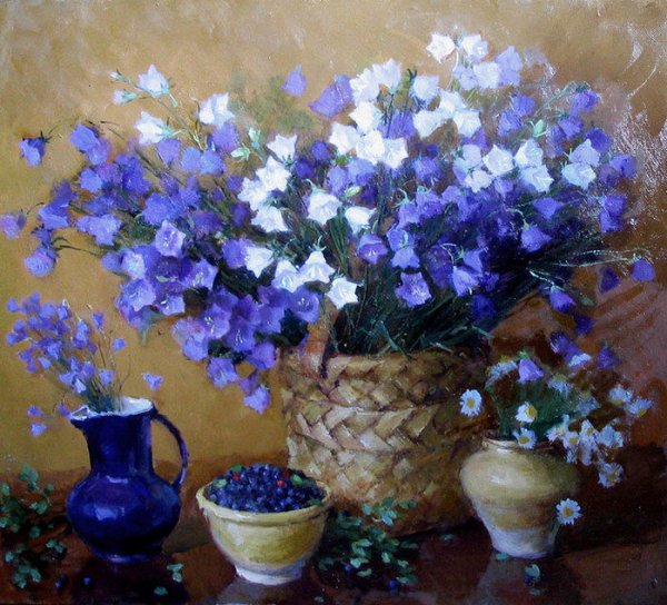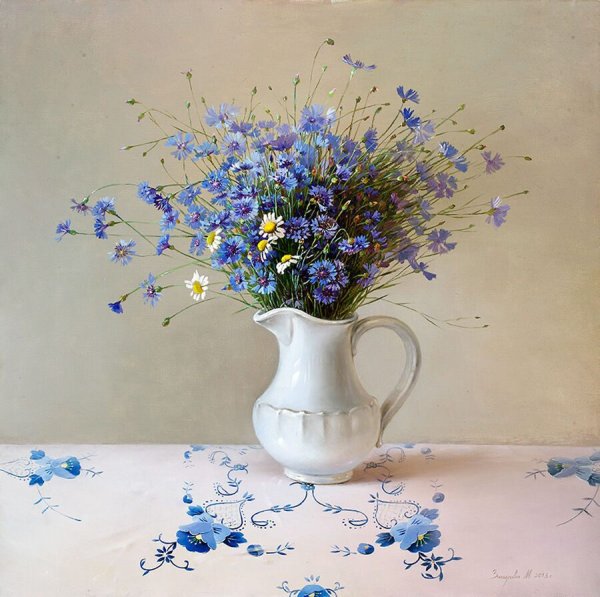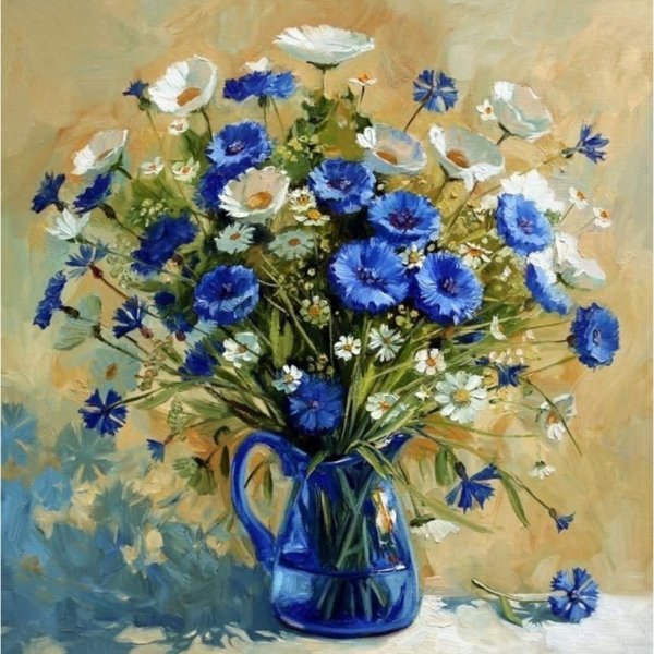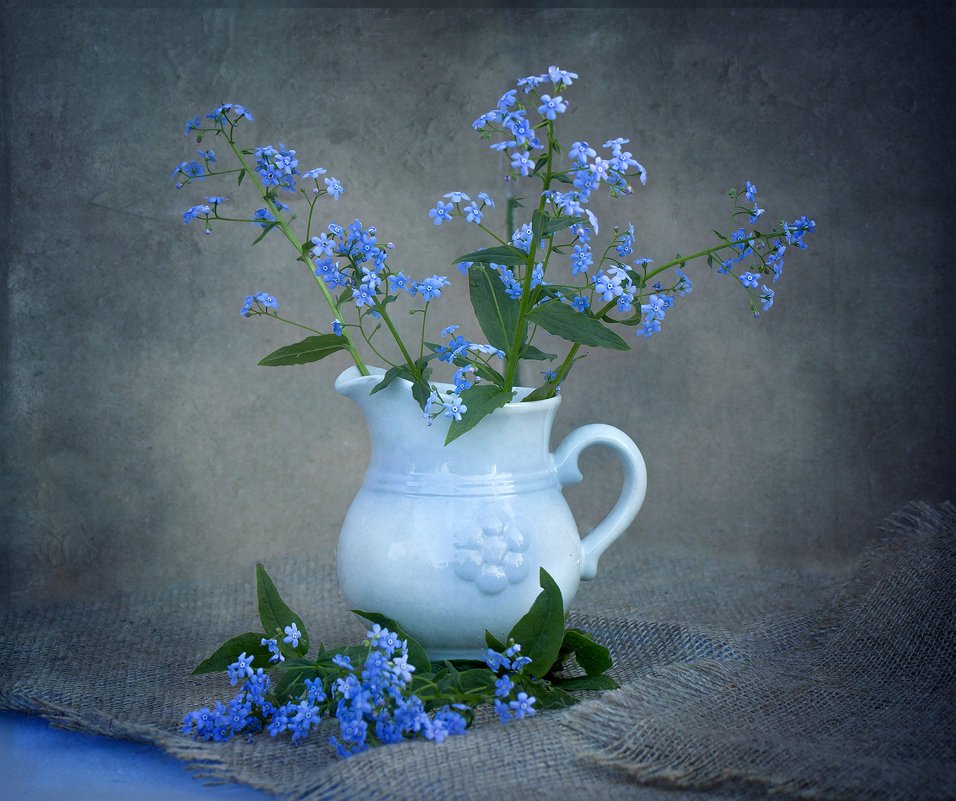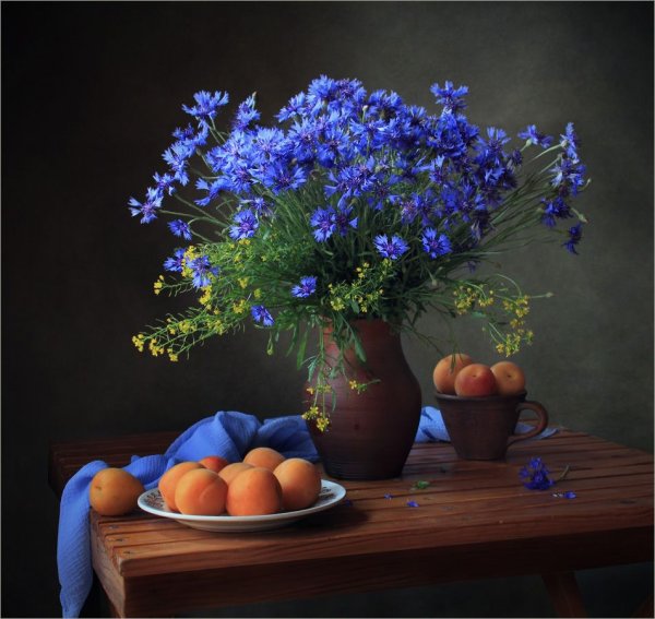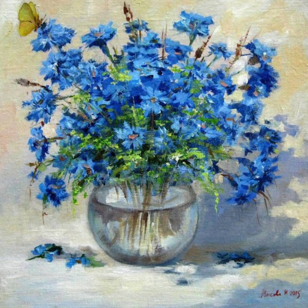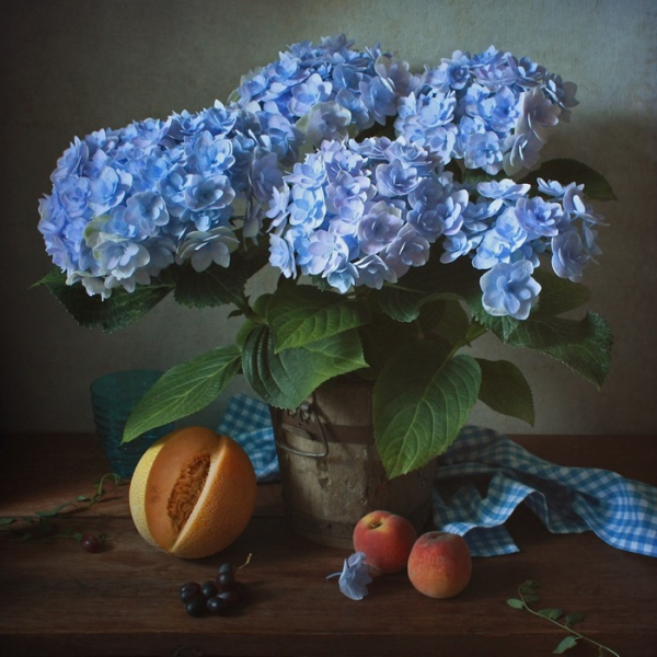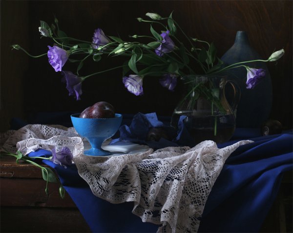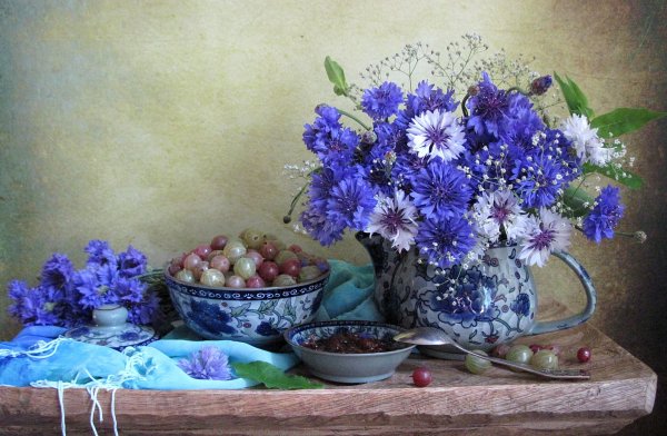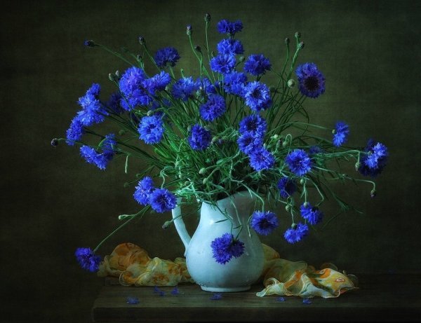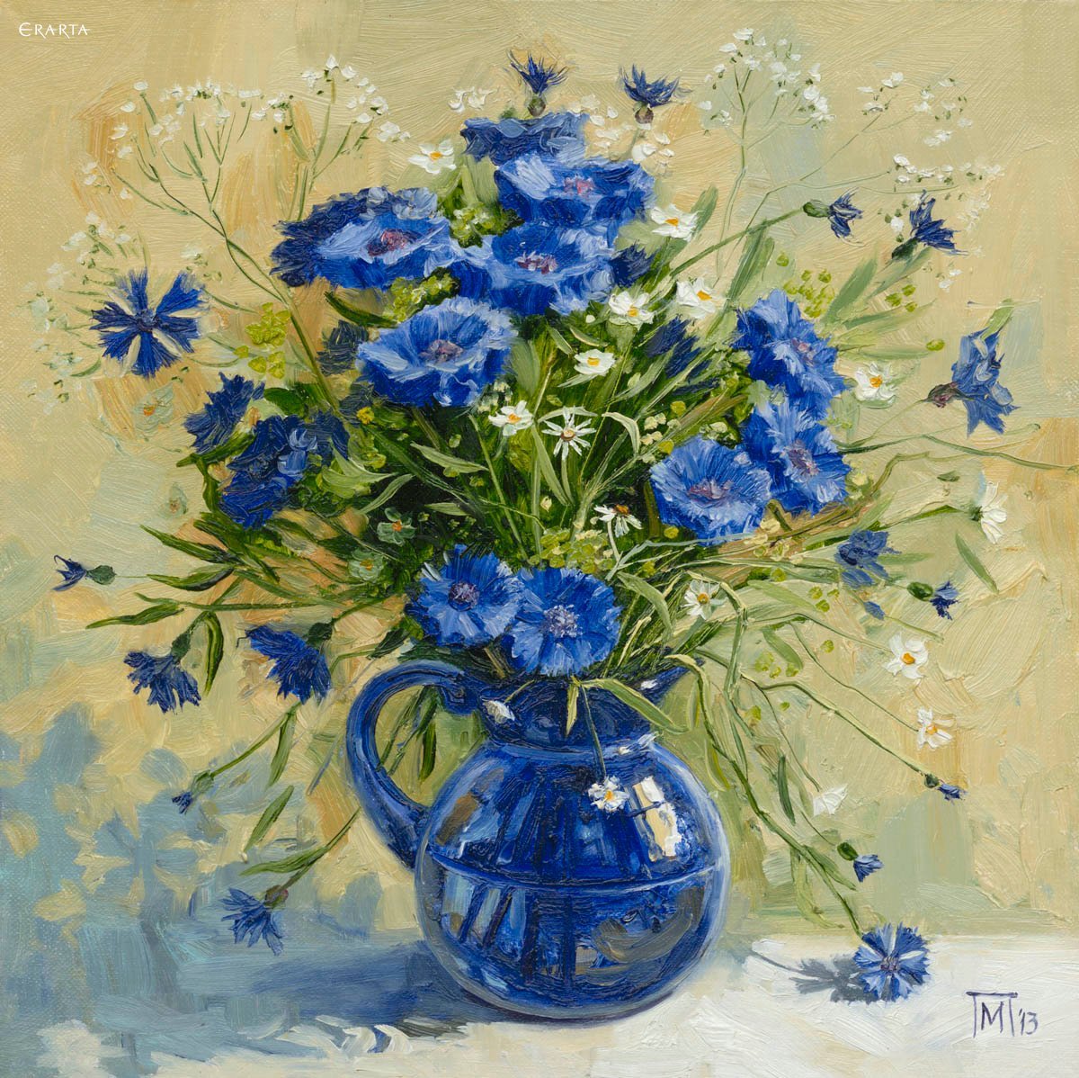 Натюрморт с голубыми цветами - это произведение искусства, которое восхищает своей красотой и нежностью. Он состоит из различных предметов, украшенных голубыми цветами, создавая гармоничную композицию. Голубые оттенки придают этому натюрморту особую атмосферу спокойствия и благополучия. Взглянув на эту картину, можно почувствовать легкость и свежесть этих цветов, которые придают ей некую мечтательность и романтичность. Натюрморт с голубыми цветами является прекрасным дополнением для интерьера, создавая ощущение уюта и приятного настроения.