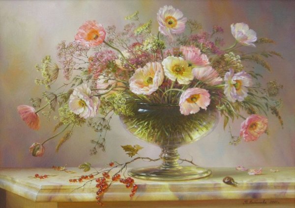 Вета Любимова - талантливый художник, специализирующийся на живописи натюрмортов. Ее работы пронизаны гармонией и красотой природы, а каждый предмет на холсте выглядит так реалистично, будто можно потрогать его кончиками пальцев. Вета умело передает текстуру и оттенки различных объектов, создавая прекрасное впечатление оживленности и объемности. Натюрморты Любимовой - это не просто композиции из фруктов, цветов и посуды, это настоящие произведения искусства, которые восхищают своей мастерством и эстетическим совершенством. Они ярко отражают индивидуальность и творческий подход автора, делая ее работы узнаваемыми и уникальными. Если вы ценитель натюрмортов и хотите добавить в свою коллекцию произведение искусства, стоит обратить внимание на работы Веты Любимовой - они точно заслуживают вашего внимания.