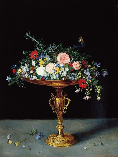 Натюрморт с цветами, созданный Яном Брейгелем, является великолепным произведением искусства. В этой картинах художник умело передал красоту и нежность цветов, создавая ощущение живости и свежести. Композиция полна разнообразия - цветы различных сортов и оттенков прекрасно сочетаются между собой, создавая гармоничное единство. Просматривая эту картину, можно словно почувствовать аромат этих цветов и окунуться в их красочный мир. Натюрморт с цветами Яна Брейгеля является прекрасным примером его мастерства и призывает нас наслаждаться простотой и изяществом природы.