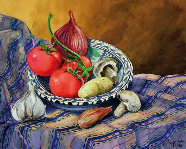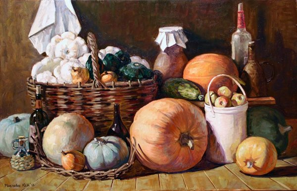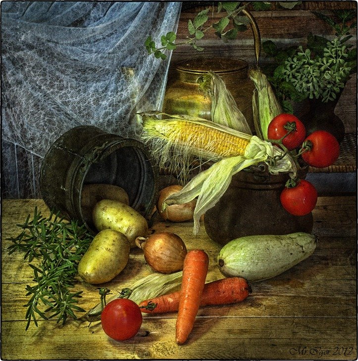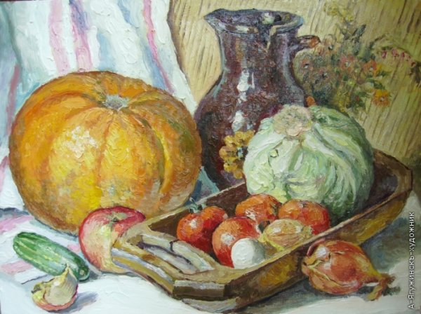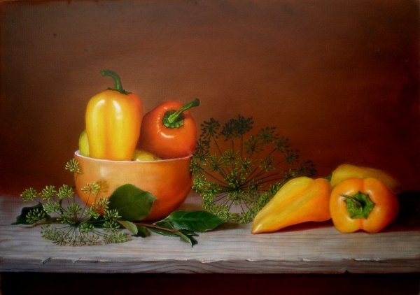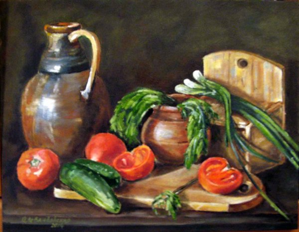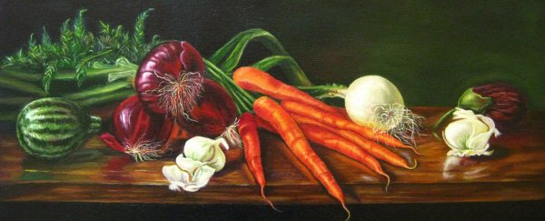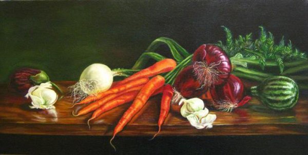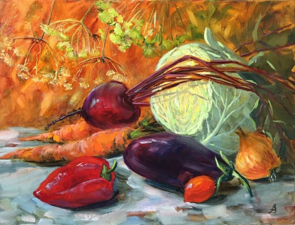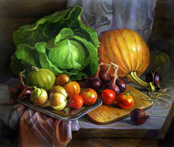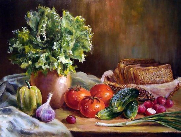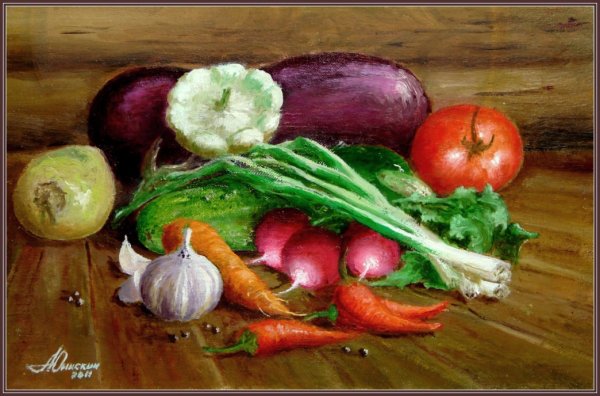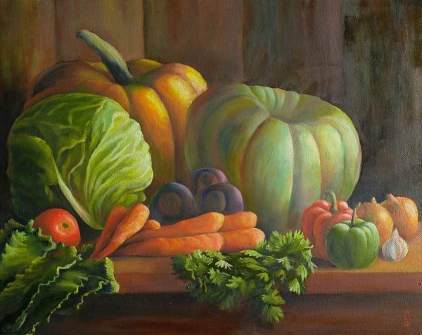 Натюрморт с овощами - это произведение искусства, которое позволяет нам увидеть красоту и изысканность обычных предметов нашей повседневности. Художники, создающие такие произведения, используют свою творческую фантазию и мастерство, чтобы передать нам всю глубину и насыщенность цветов и форм овощей. Они аккуратно размещают овощи на холсте или в студии, играя с пропорциями, светом и тенями, чтобы достичь гармонии и привлечь наше внимание. Такие натюрморты не только визуально привлекательны, но и могут иметь глубокий символический смысл, отражая богатство и изобилие природы или вызывая размышления о нашем отношении к пище и здоровому образу жизни. В результате мы получаем произведение искусства, которое не только радует глаз, но и задает нам вопросы о мире, в котором мы живем.