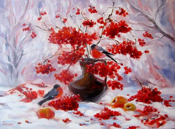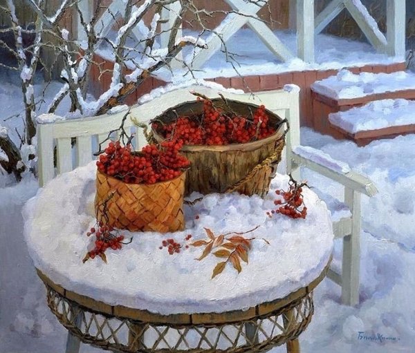 "Зимний натюрморт" - это коллекция картины, созданные талантливыми художниками, которые воспевают прекрасную зимнюю природу. Эти произведения искусства захватывают уникальные моменты зимнего времени года, передавая его красоту и атмосферу. Они отражают покрытые снегом леса, замерзшие реки и озера, падающий снег и волшебное освещение зимнего солнца. Каждая картина "Зимнего натюрморта" переносит зрителя в окружение спокойствия, холода и тишины, позволяя насладиться удивительными зимними пейзажами и раскрыть свою фантазию. Сочетание ярких цветов и мастерского рисунка делает эти картины поистине уникальными произведениями искусства, которые способны подарить радость и вдохновение каждому зрителю.