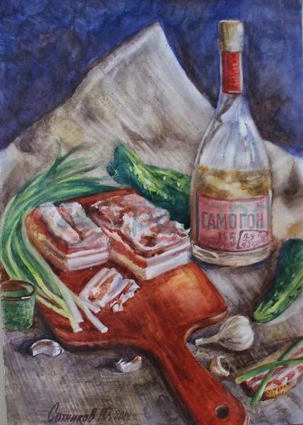 Картина "Натюрморт с водкой" выполнена масляными красками и представляет собой удивительное сочетание реализма и символики. В основе произведения лежит изображение стеклянной бутылки водки, окруженной различными элементами, такими как фрукты, цветы или посуда. Отражая богатство и разнообразие нашей культуры, эта картина является приятным и эстетическим воплощением русской традиции наслаждаться вкусом и атмосферой, связанной с этим алкоголем. Яркие цвета и тщательно проработанные детали создают ощущение реальности и позволяют зрителю полностью погрузиться в мир изображенного. "Натюрморт с водкой" - это не просто картина, это история, которая вызывает эмоции и воспоминания, и оставляет глубокий след в сердцах и душах любителей искусства.