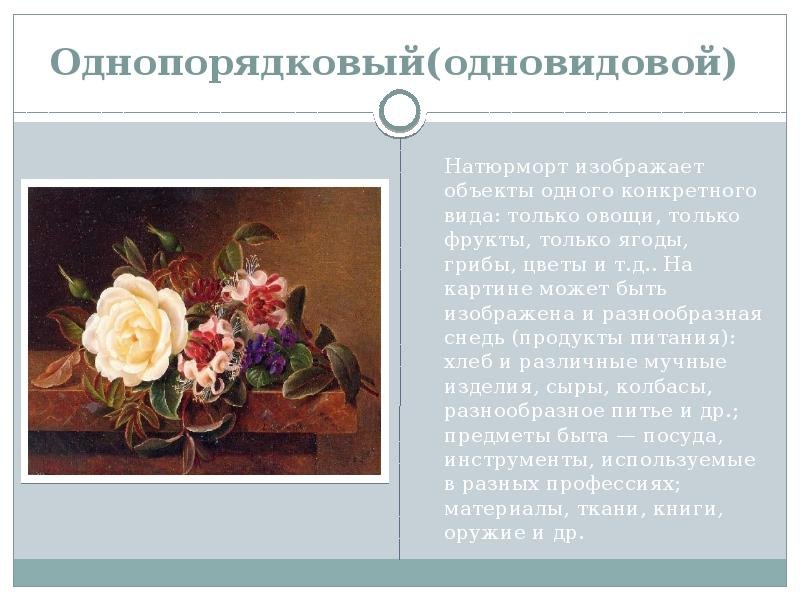 "Однопорядковый натюрморт картины" - это произведение искусства, которое воплощает в себе уникальную форму изображения различных объектов на одном уровне. Этот вид натюрморта отличается особой композицией и расположением предметов, создавая гармоничное и сбалансированное визуальное впечатление. Картина, выполненная в стиле однопорядкового натюрморта, может быть как реалистичной, передающей детализированные детали объектов, так и иметь абстрактные элементы, играющие с цветом, формой и текстурой. В результате получается произведение искусства, которое привлекает внимание своей оригинальностью и уникальностью исполнения.