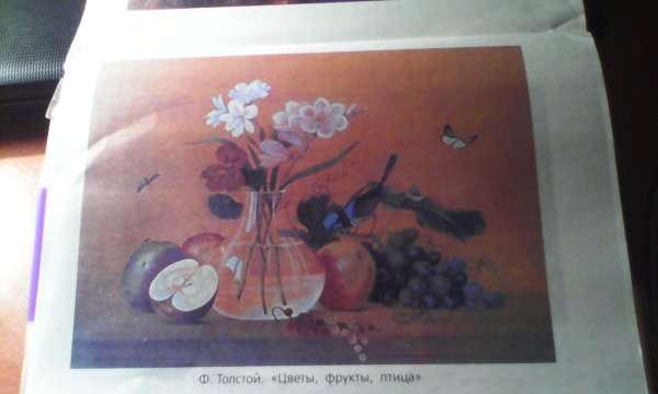 Картина "Цветы, фрукты и птица" представляет собой великолепную композицию натюрморта, созданного талантливым художником Толстым. На этой живописной работе сочетаются яркие цветовые акценты, изображения разнообразных цветов и фруктов, а также прекрасная птица, которая придает образу легкости и элегантности. Каждый элемент на картине прекрасно дополняет друг друга, создавая гармоничное и ухоженное впечатление. Данная картина является отличным выбором для тех, кто ценит красоту природы и любит наслаждаться ее изображением в искусстве.