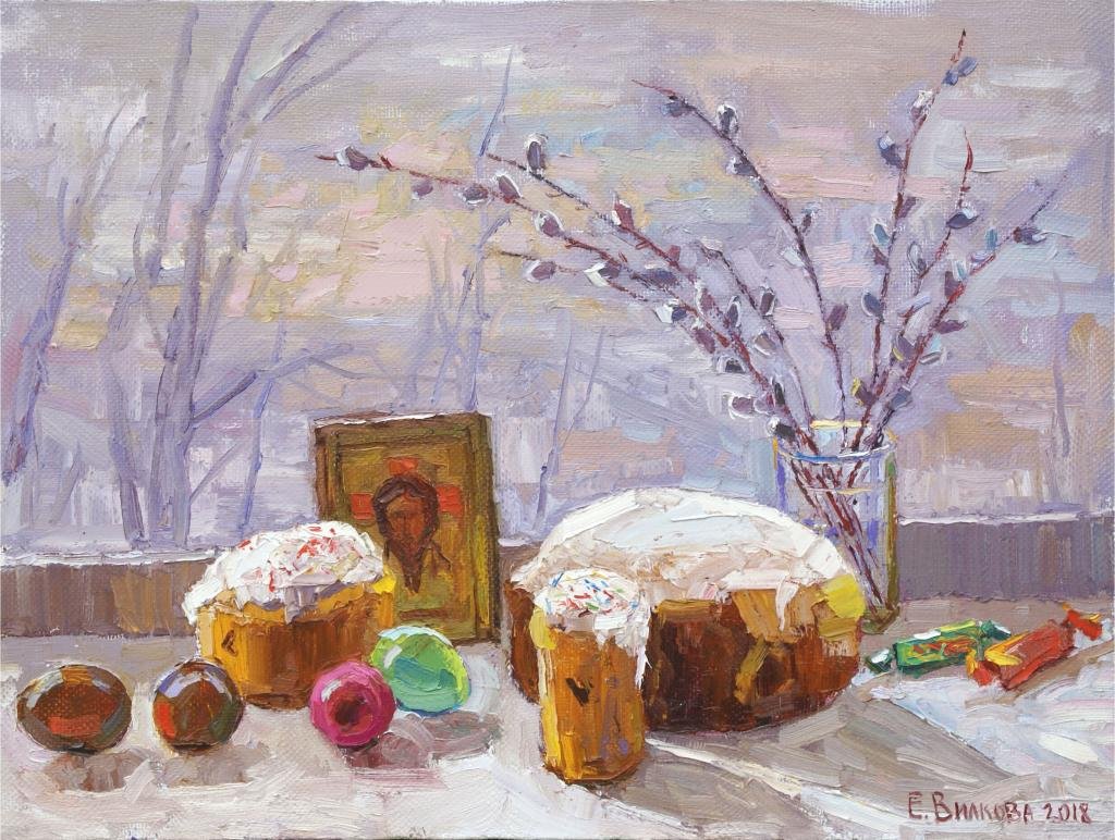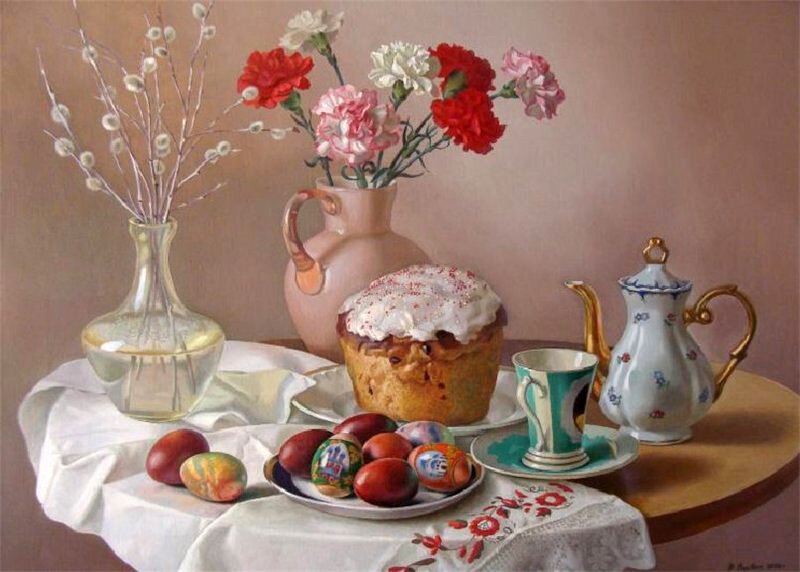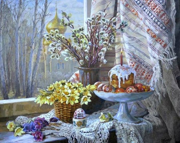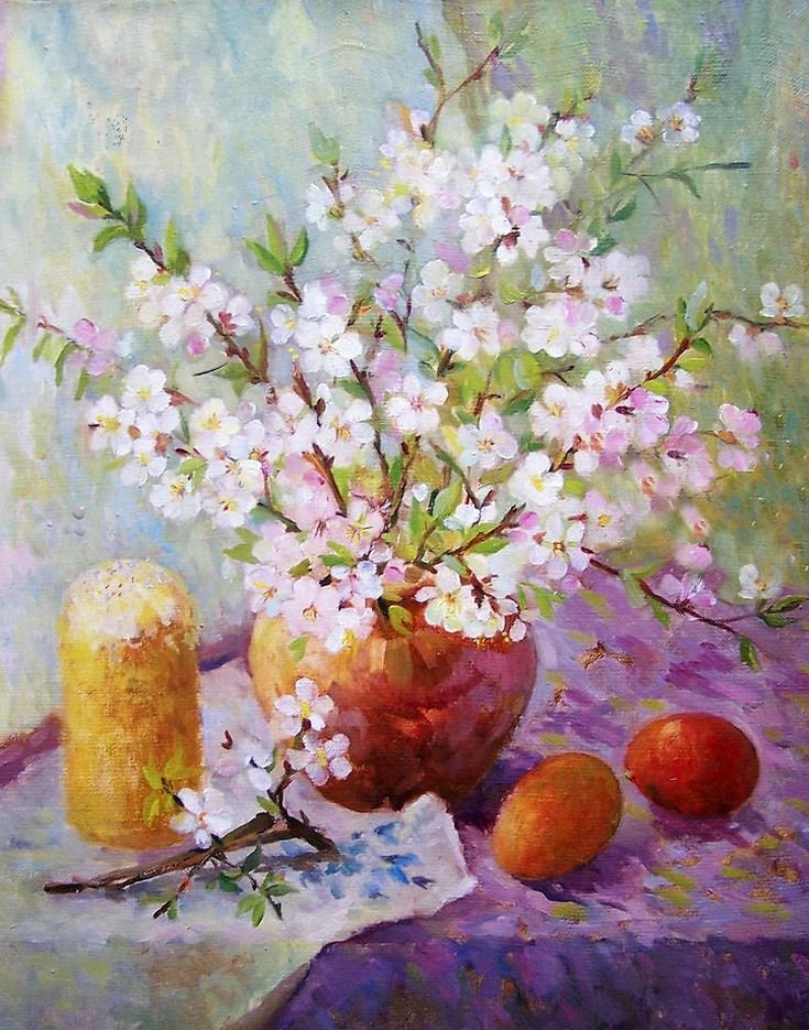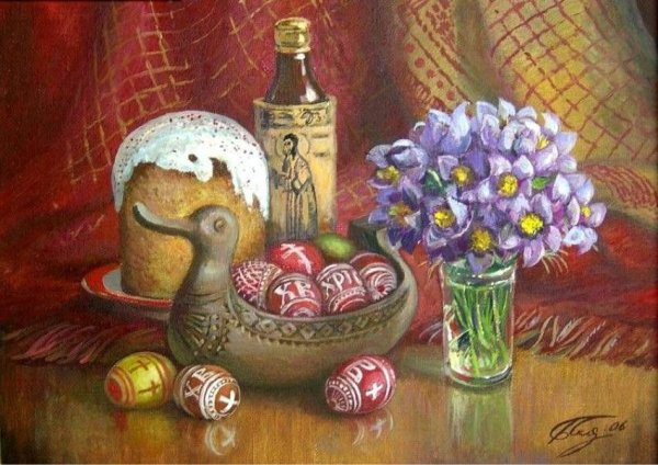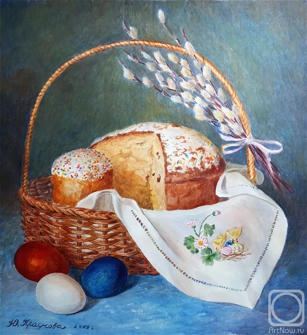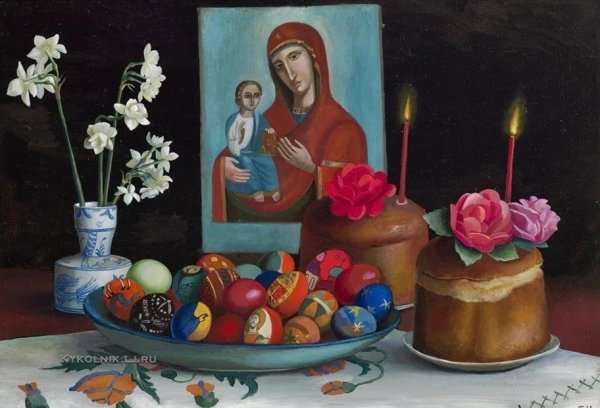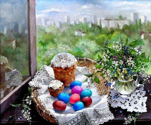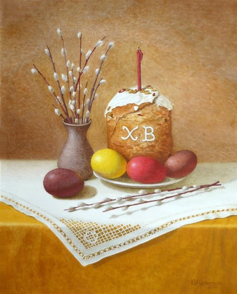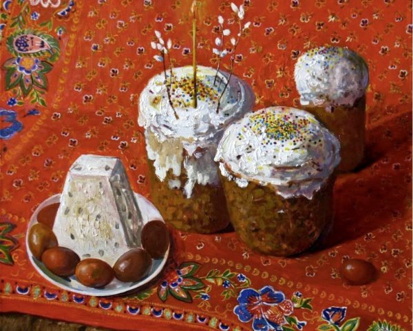 Пасхальный натюрморт - это картина, которая является отражением праздничной атмосферы Пасхи. Она изображает композицию различных символов этого праздника, таких как яйца, цветы, зелень и другие атрибуты. На фоне ярких и сочных красок художник создает образы, которые наполняют пространство свежими и весенними ощущениями. Пасхальный натюрморт не только украшает интерьер, но и передает радость и новую жизнь, которые сопровождают этот праздник. Он способен вызвать чувство тепла, радости и ожидания в сердцах зрителей, внося в дом атмосферу праздника и весны.