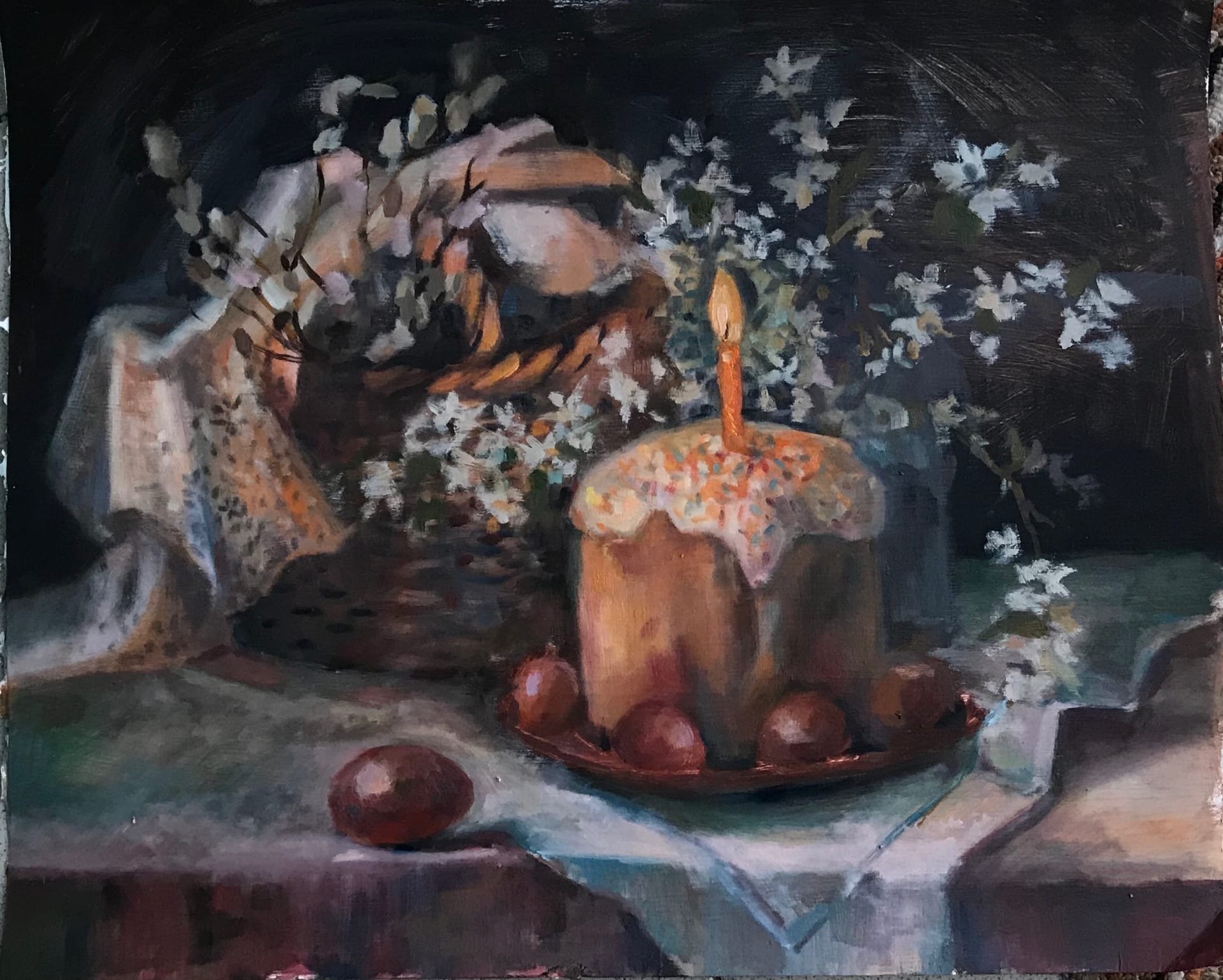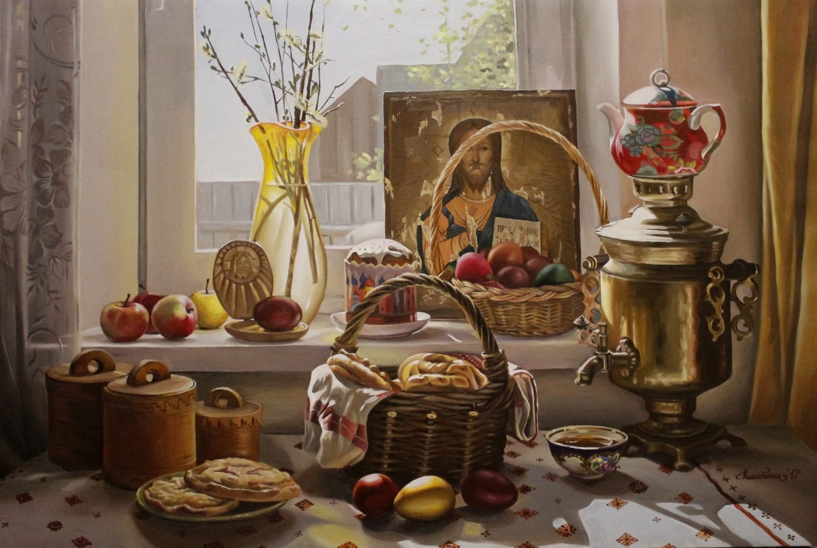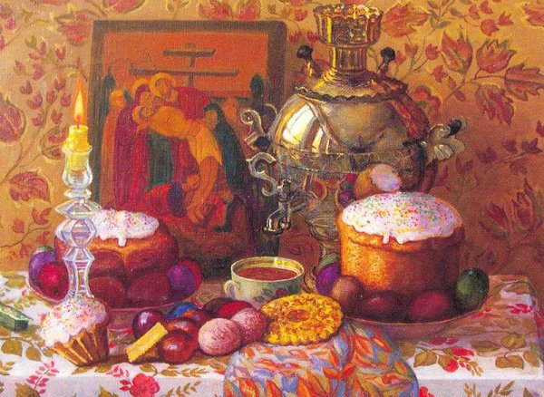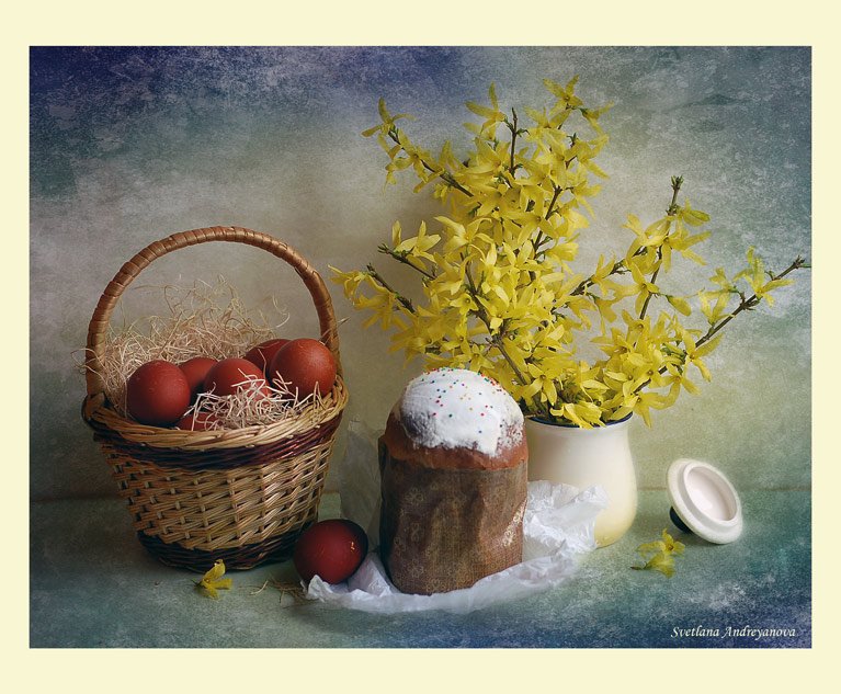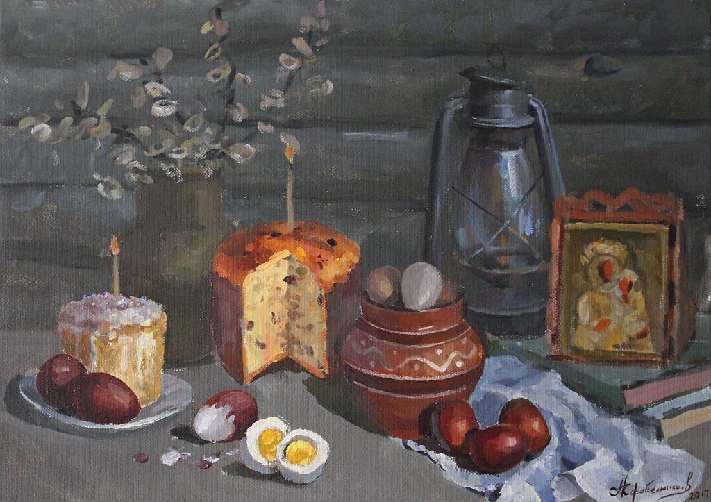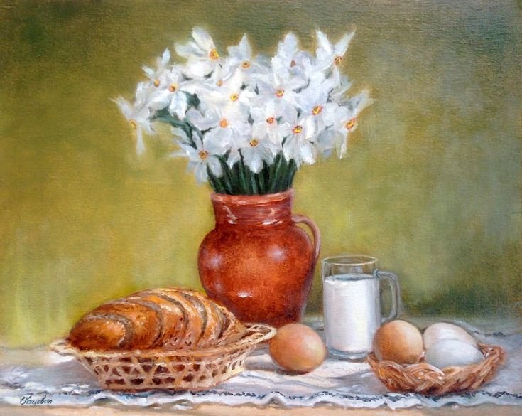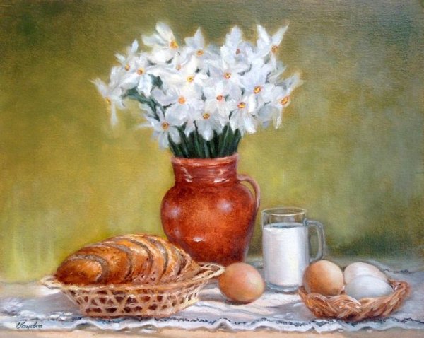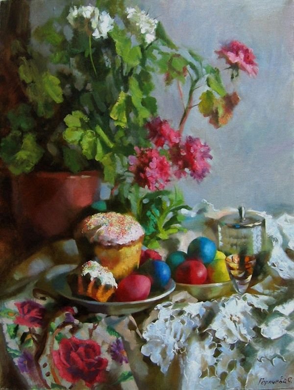 Пасхальный натюрморт - это картина, которая является отражением праздничной атмосферы Пасхи. Она изображает композицию различных символов этого праздника, таких как яйца, цветы, зелень и другие атрибуты. На фоне ярких и сочных красок художник создает образы, которые наполняют пространство свежими и весенними ощущениями. Пасхальный натюрморт не только украшает интерьер, но и передает радость и новую жизнь, которые сопровождают этот праздник. Он способен вызвать чувство тепла, радости и ожидания в сердцах зрителей, внося в дом атмосферу праздника и весны.