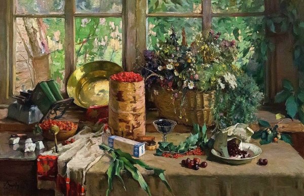 Натюрморты Кондрата Максимова – это удивительное сочетание мастерства и эстетической красоты. В каждой его картине можно увидеть тщательно подобранную композицию, яркие цветовые акценты и безупречную детализацию. Используя различные объекты, такие как цветы, фрукты или предметы быта, художник создает неповторимые сцены, которые привлекают своей гармонией и живописной атмосферой. Натюрморты Кондрата Максимова оживляют простые предметы и заставляют зрителя восхищаться искусством передачи особых настроений и эмоций. Будь то яркая палитра или мягкие переходы тонов, каждая картина натюрморта Кондрата Максимова становится окном в мир красоты и гармонии.