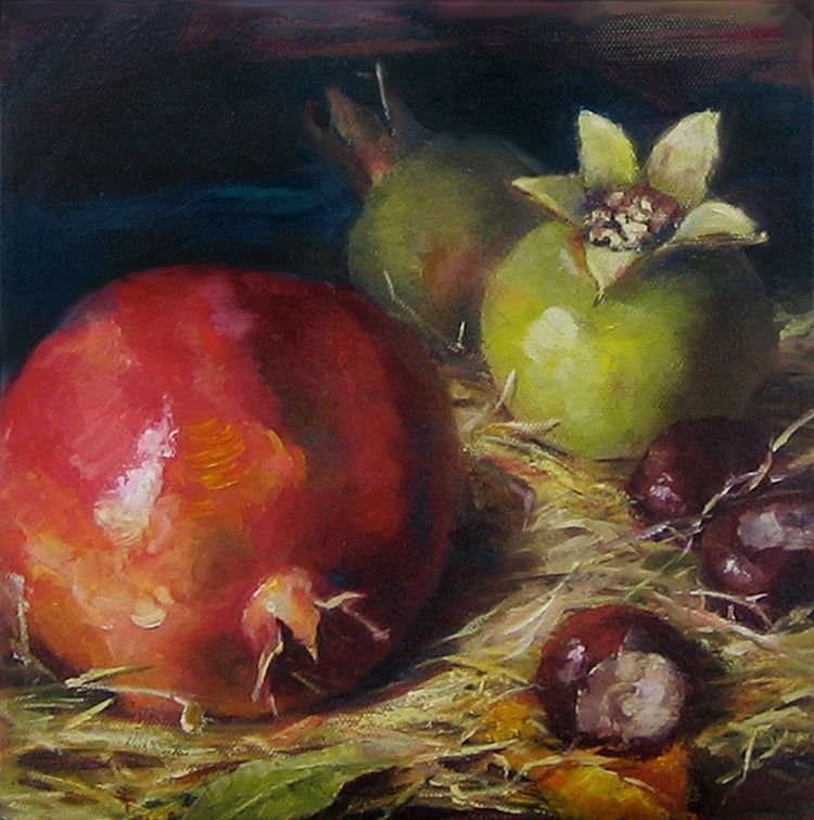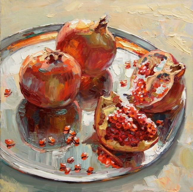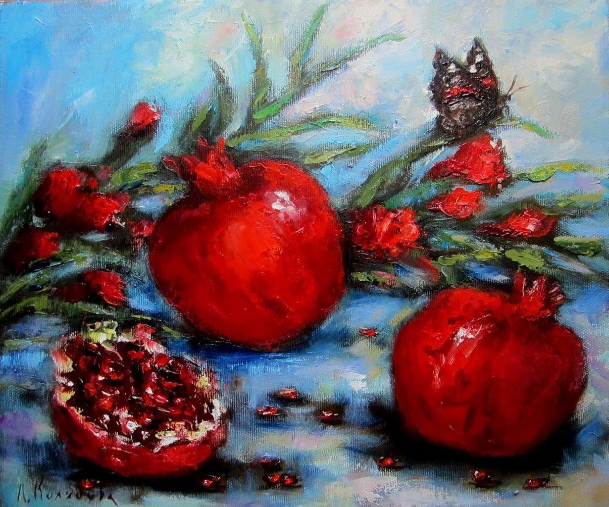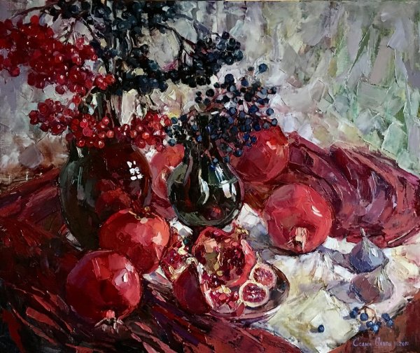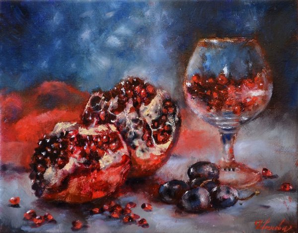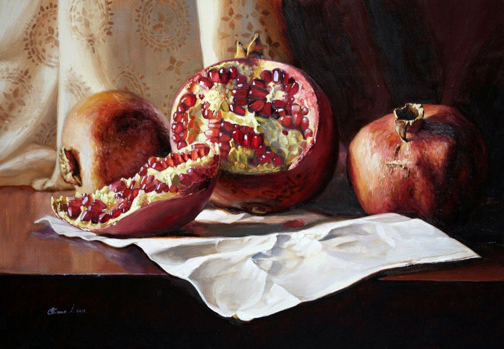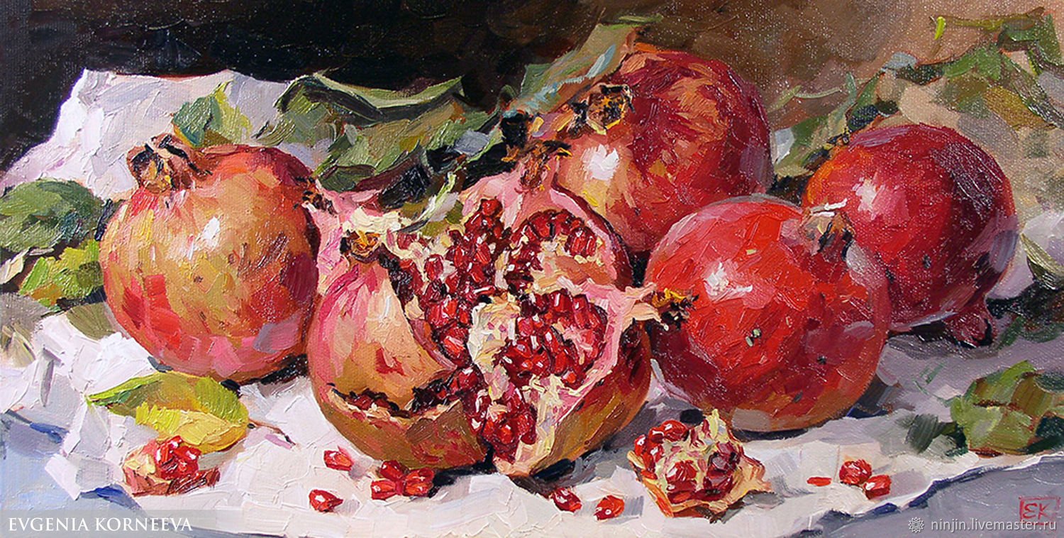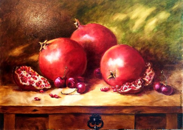 Картина маслом "Гранаты натюрморт" - это произведение искусства, которое восхищает своей красотой и изящностью. В этой работе художник передал яркость и насыщенность цветов гранат, создавая ощущение их живости и свежести. Каждый плод на масле уникален, с его собственными оттенками и отражениями света. Разнообразие текстур и детализация проработки делают эту картину особенно привлекательной для любителей искусства. Картина "Гранаты натюрморт" станет прекрасным украшением интерьера, добавляя нотку изысканности и элегантности в любое помещение.