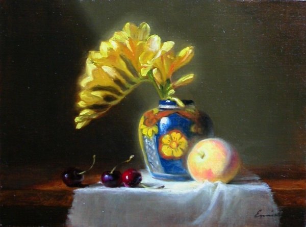Картины натюрморт от Кэри Эннис – это удивительное сочетание красок, форм и текстур, которое оживляет обыденные предметы и приносит им новую жизнь. Ее работы полны яркости и выразительности, каждый объект на холсте пронизан эмоциями и силой. Великолепно воспроизведенные цвета и тени создают глубину и реалистичность, позволяя зрителю окунуться в мир натюрморта и увидеть красоту в самых обычных вещах. Картины Кэри Эннис вызывают чувство восхищения и восторга своей мастерской работой и оригинальным подходом к изображению предметов. Они станут прекрасным украшением для любого интерьера и привнесут в него неповторимый шарм и эстетическое блаженство.