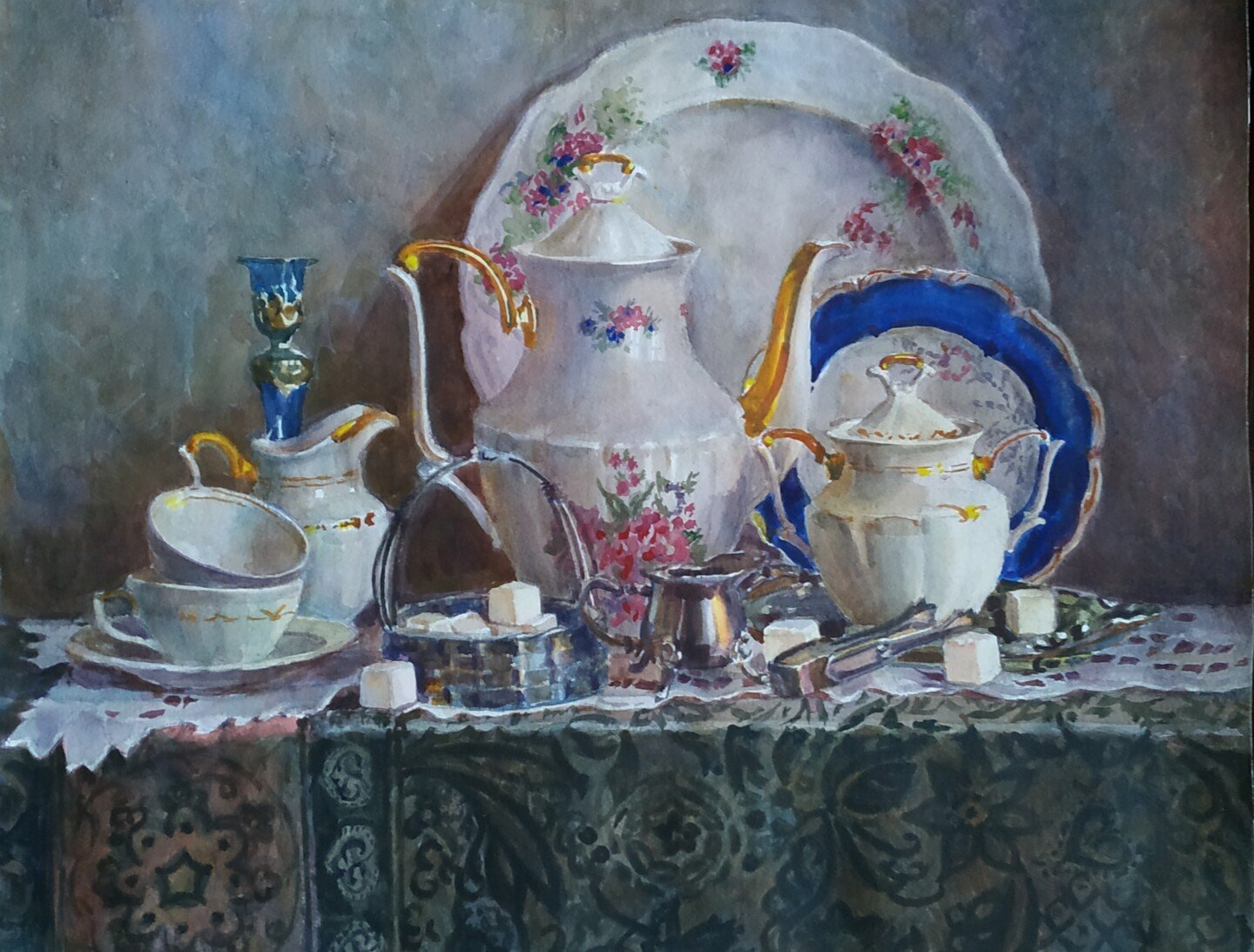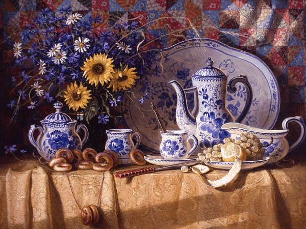 Великолепная картина натюрморт с посудой является истинным произведением искусства. В этой работе художник сумел передать красоту и изящество различных предметов, объединив их в гармоничную композицию. Через мастерство палитры и игру света и тени, на картине оживает каждая чашка, блюдце или фрукт, словно приглашая зрителя окунуться в атмосферу уюта и изысканности. Каждая деталь, каждый штрих, отражает вкус и стиль художника, создавая великолепное впечатление и эмоциональную привлекательность этого произведения искусства. Натюрморт с посудой – это прекрасный выбор для тех, кто ценит красоту и желает внести изысканность и элегантность в свой интерьер.