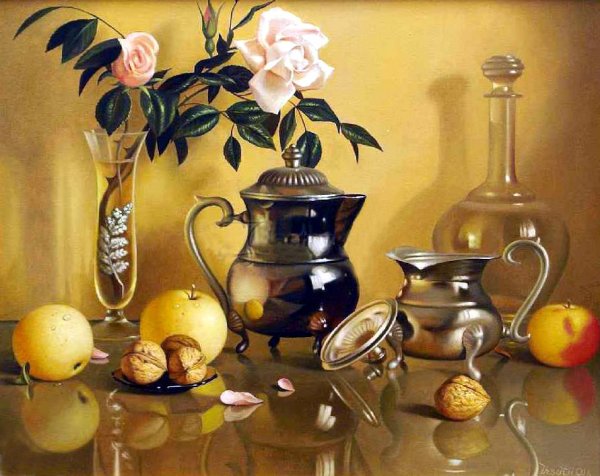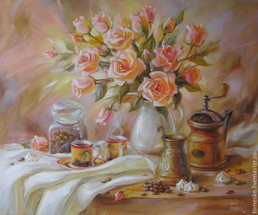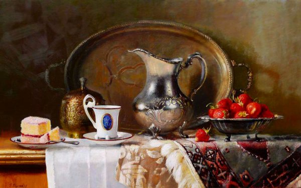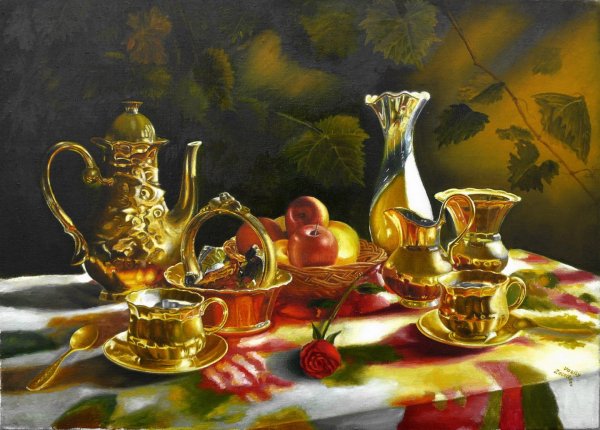 Картины маслом натюрморты с посудой - это удивительное искусство, которое захватывает взгляд своей красотой и детализацией. В этих произведениях художники воссоздают различные предметы посуды с помощью масляных красок, передавая их форму, цвет и текстуру с невероятной реалистичностью. От деликатных фарфоровых чашек до массивных кувшинов и фруктовых корзин, каждый элемент изображения приобретает особую глубину и живость. Натюрморты с посудой являются не только прекрасным дополнением к интерьеру, но и отражением мастерства и таланта художника, который умело передает прелести и уникальность каждого предмета. Возможность насладиться такими полотнами позволяет нам окунуться в мир изящества и элегантности, погрузиться в атмосферу умиротворения и красоты.