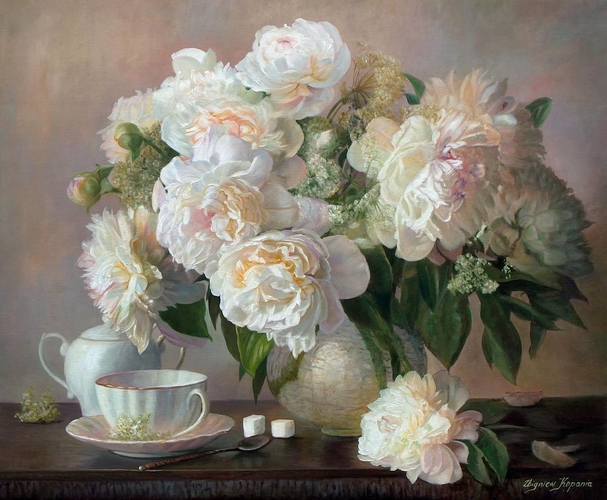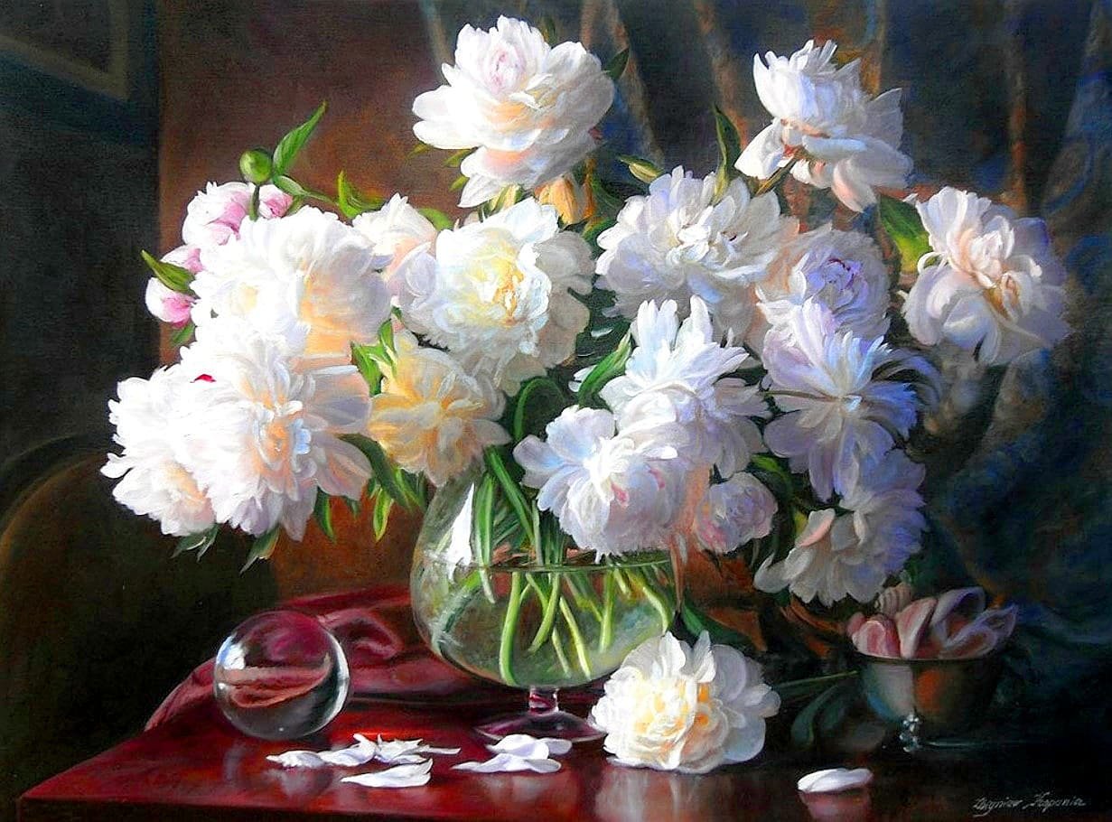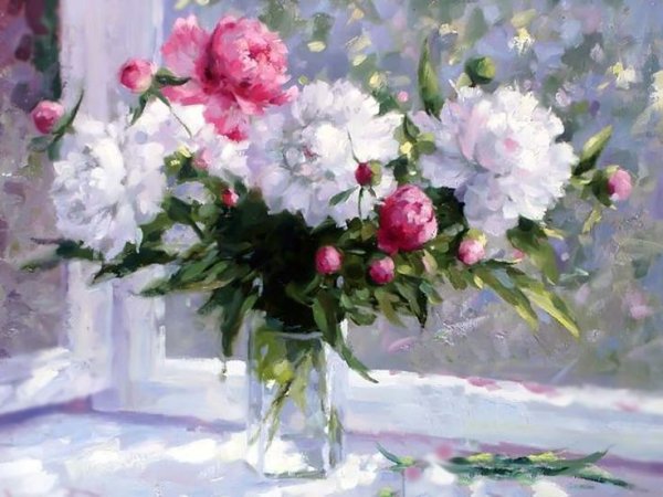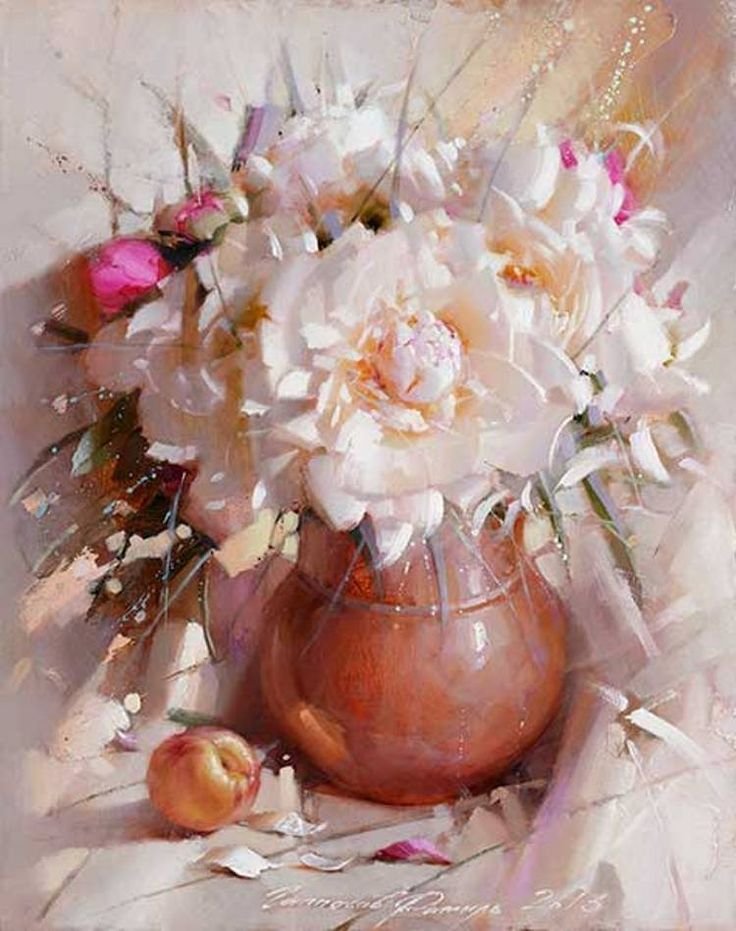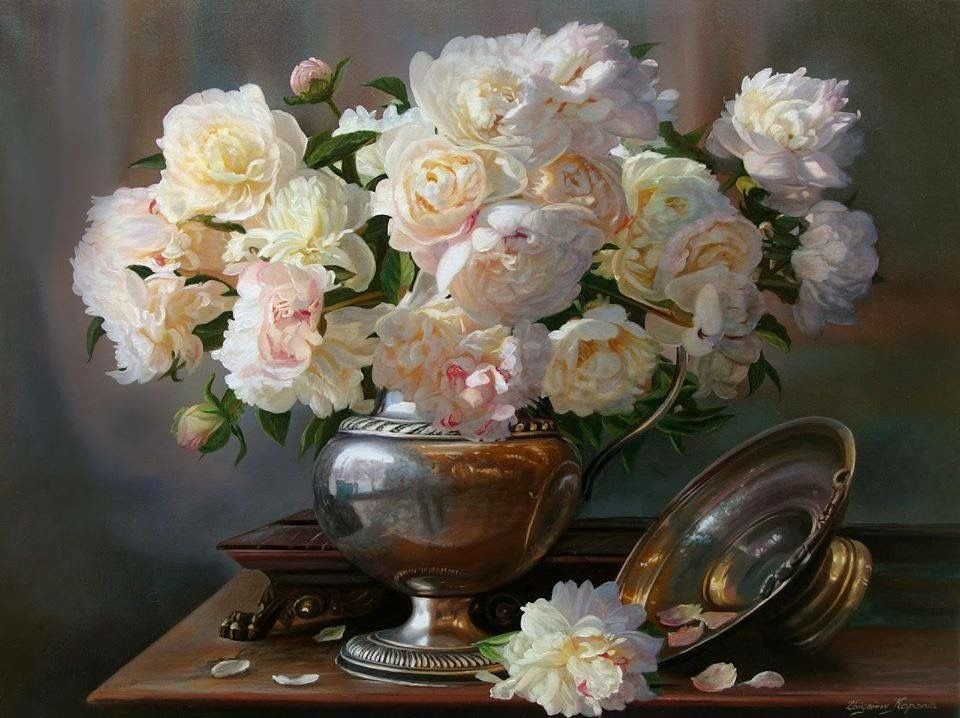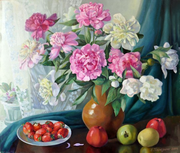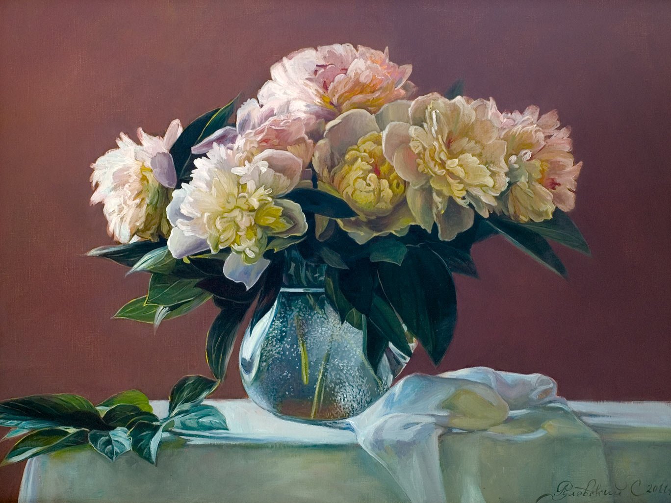 Картина маслом "Натюрморт с пионами" - это произведение искусства, которое восхищает своей нежной красотой и изысканностью. На полотне изображены прекрасные пионы, распускающиеся во всей своей великолепной пышности. Они будто оживают на фоне темного фона и наполняют комнату ароматом свежести и цветочного очарования. Художник смог передать каждый мягкий лепесток, каждый изящный контур цветка, создавая иллюзию реальности и заставляя зрителя прикоснуться к этой красоте. Эта картина станет украшением любого интерьера и подарит радость и восторг своим неповторимым образом.