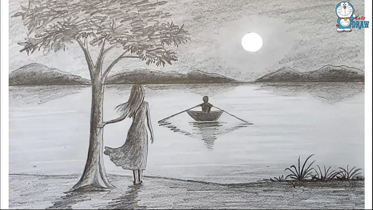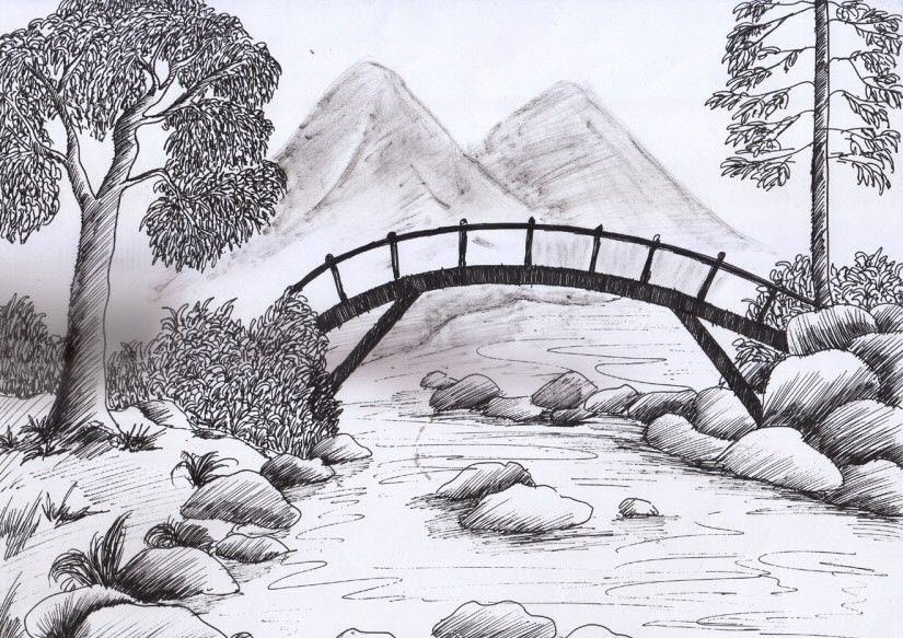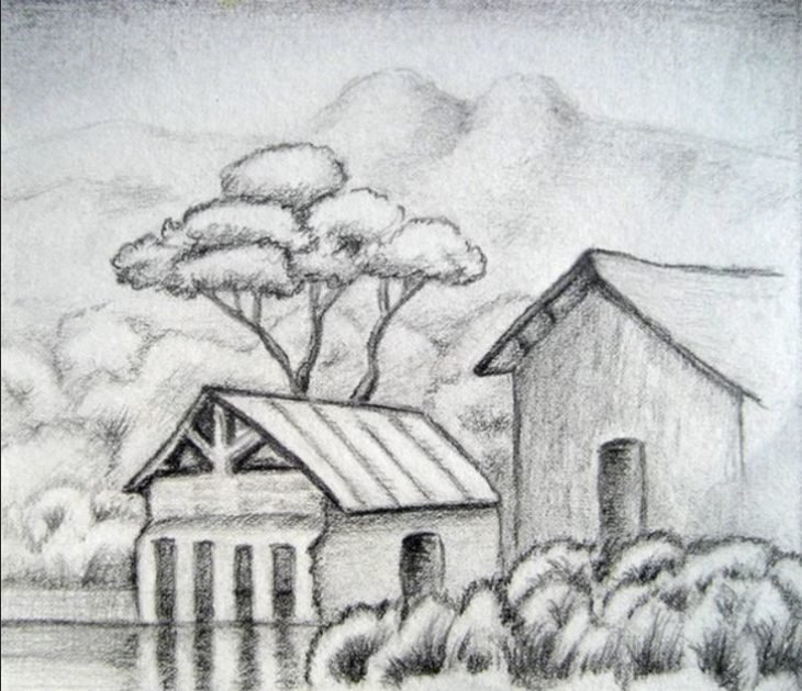 Пейзаж карандашом для срисовки