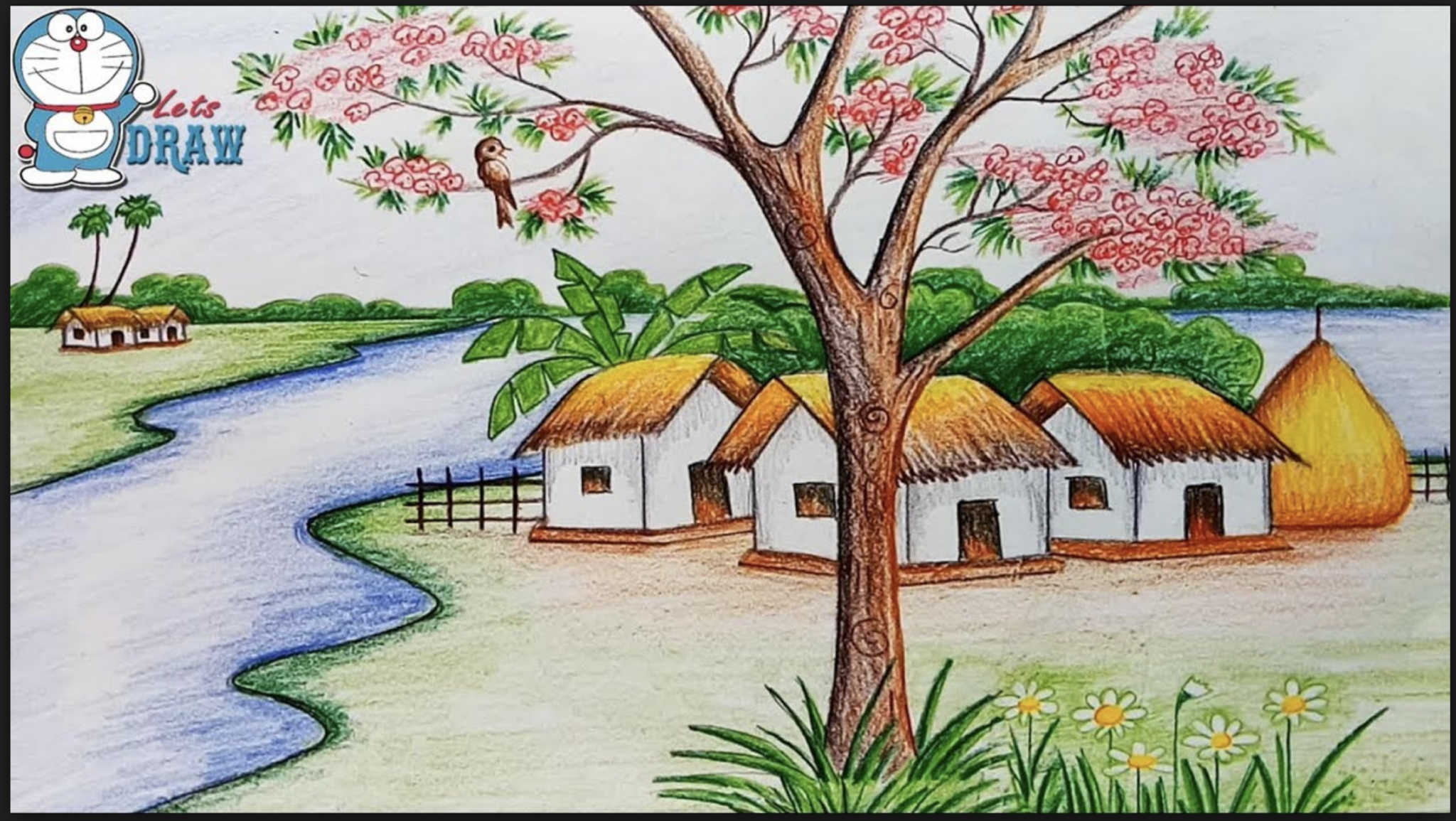 Весенний пейзаж цветными карандашами