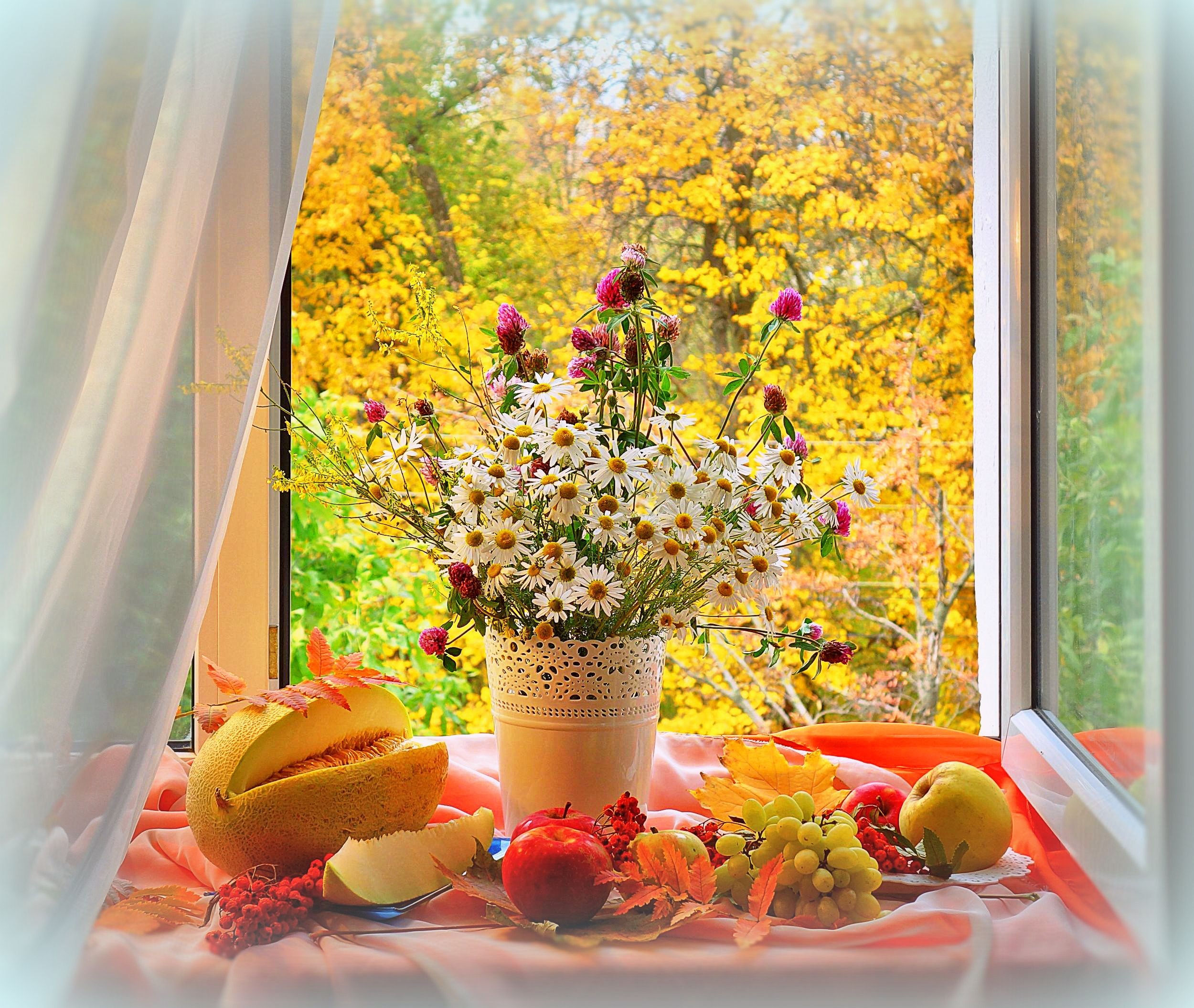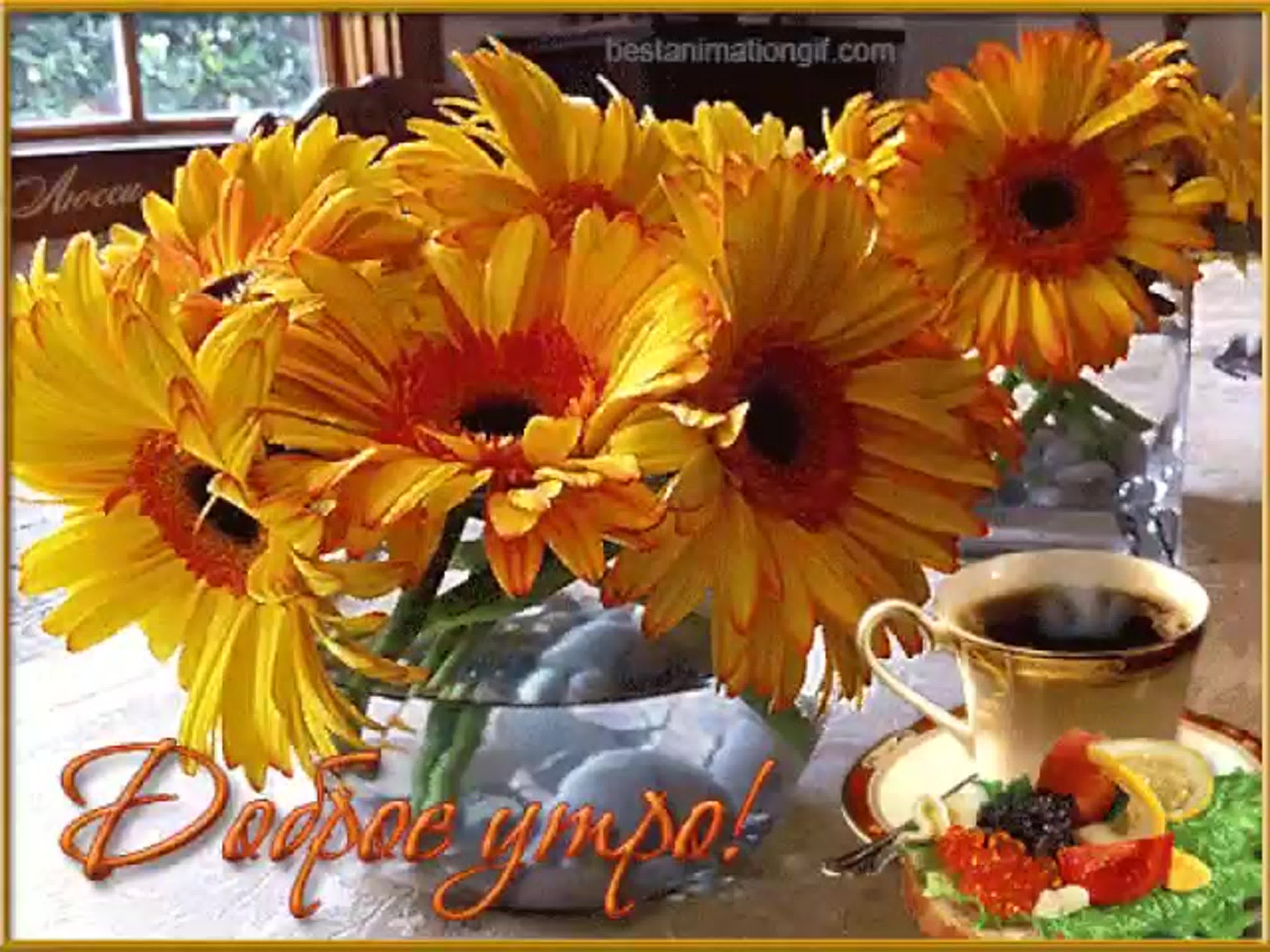 Доброе утро с осенними цветами и пожеланиями