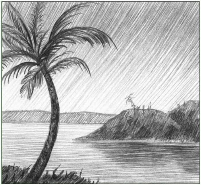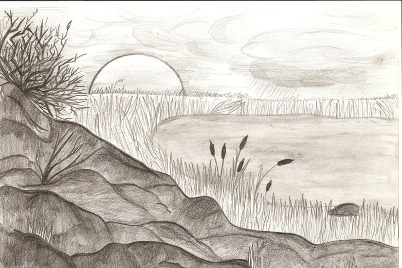 Пейзаж карандашом для срисовки