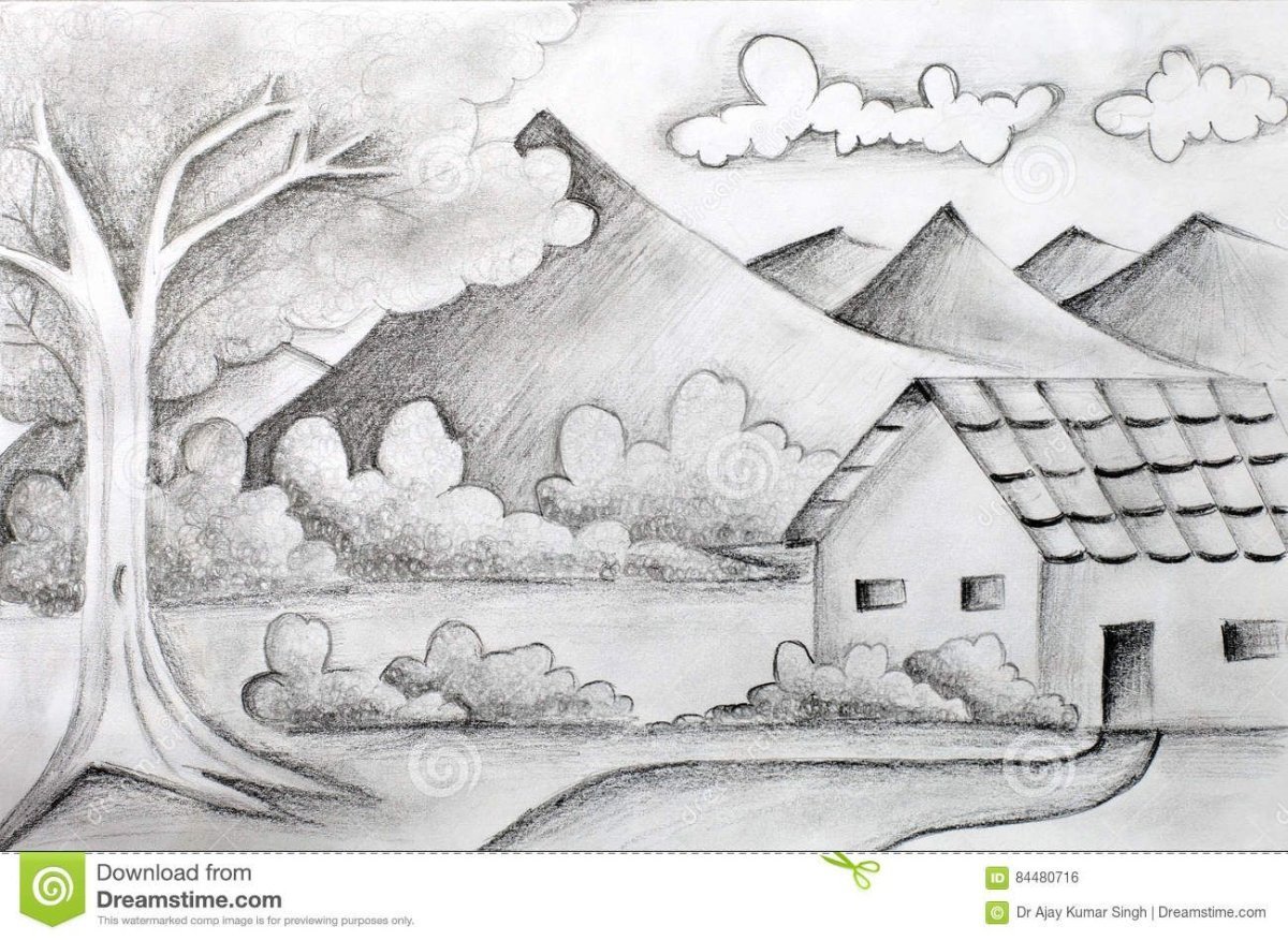 Пейзаж карандашом для срисовки