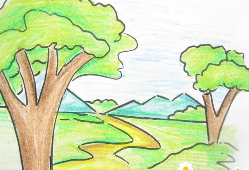 Пейзаж цветными карандашами для детей
