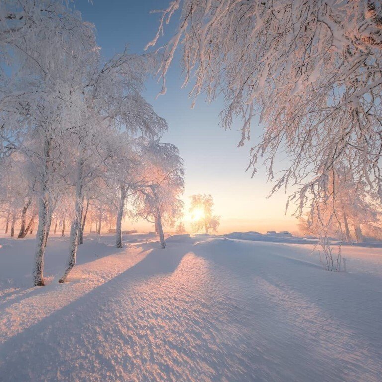 Красивый пейзаж зимы с добрым утром (50 фото)