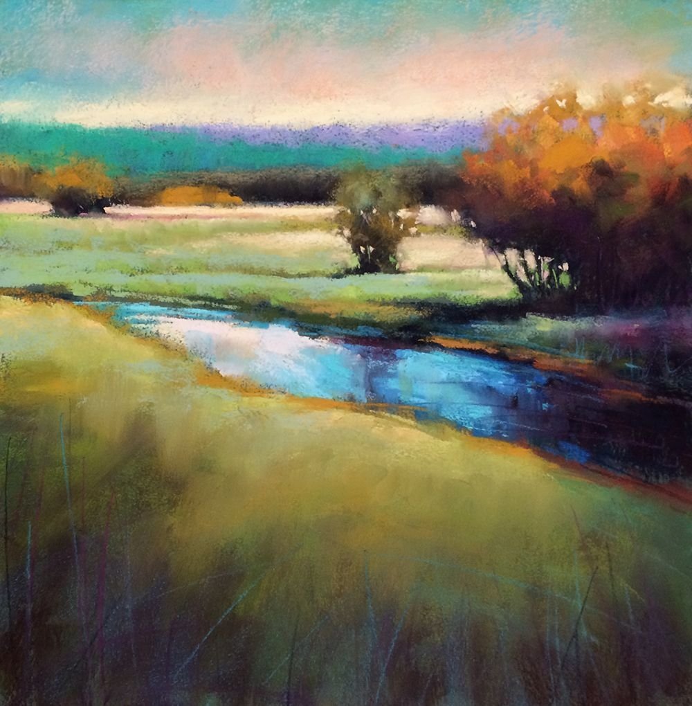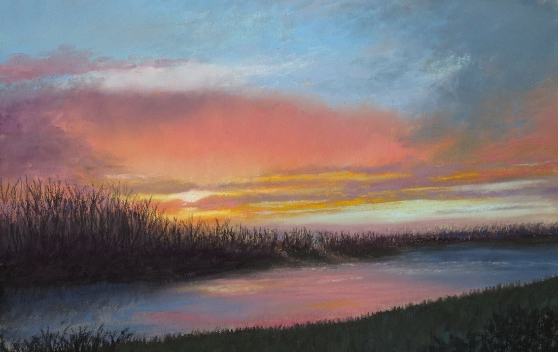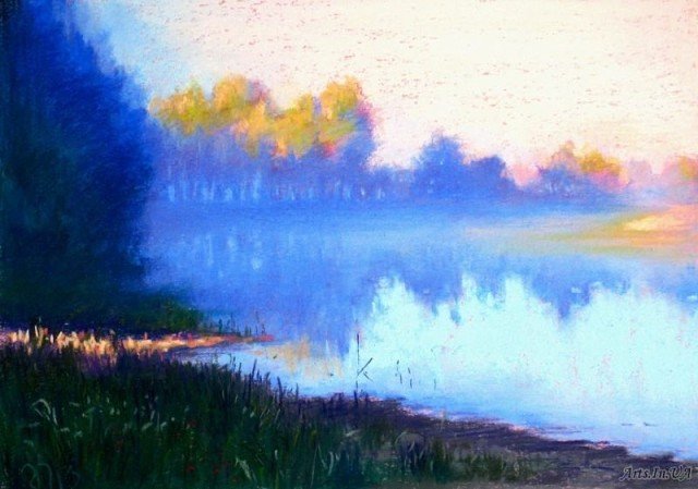 Речной пейзаж пастелью