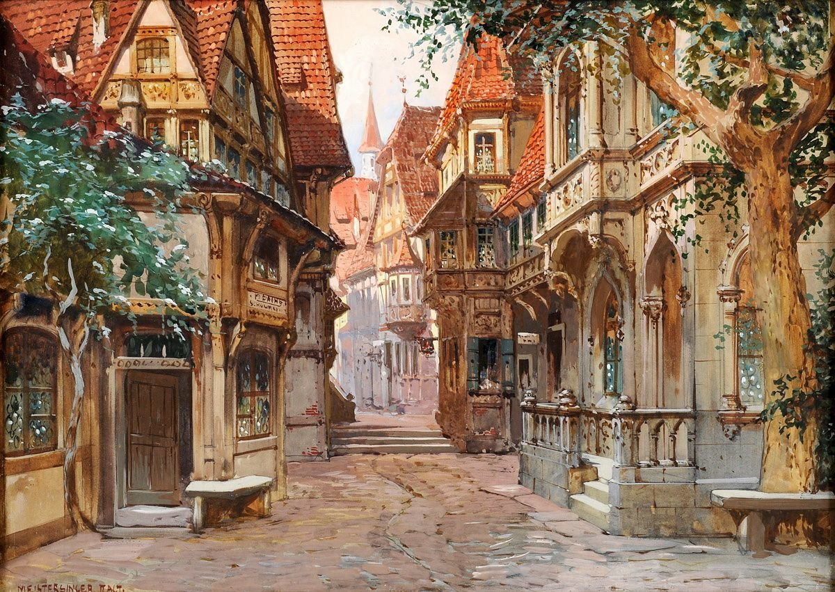 Фэнтезийный средневековый город арт