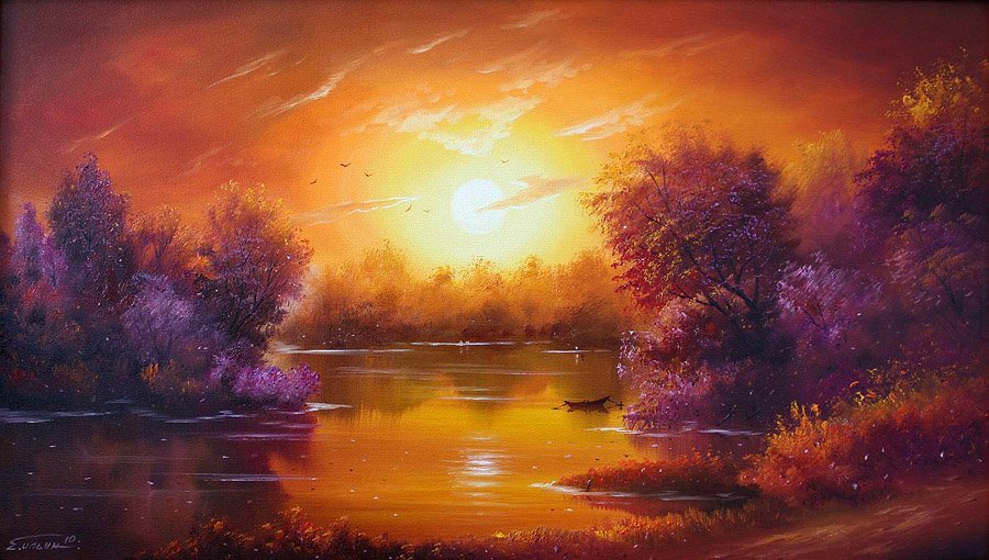 Пейзаж маслом закат