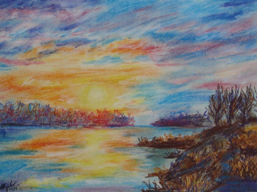 Пейзаж пастельными карандашами