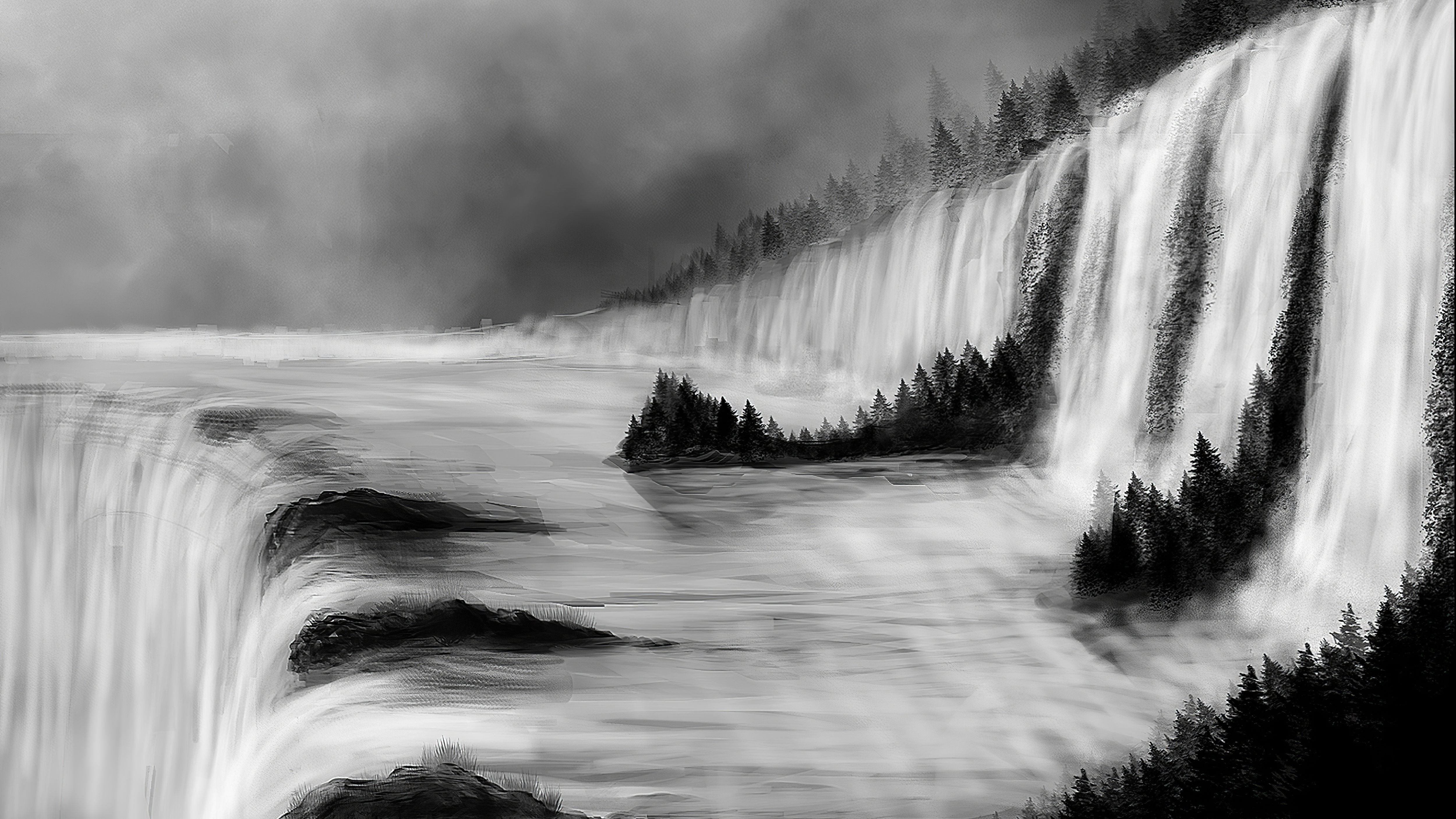 Природный пейзаж карандашом