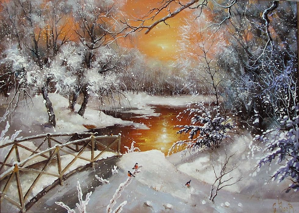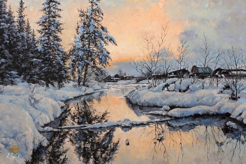 Леднев Александр Алексеевич . Зимний пейзаж.