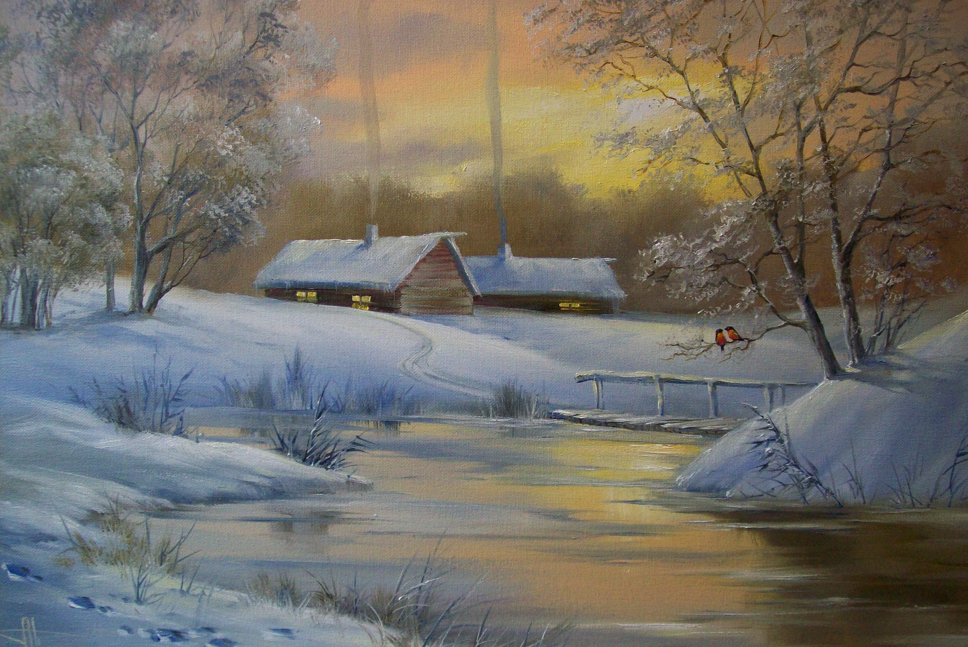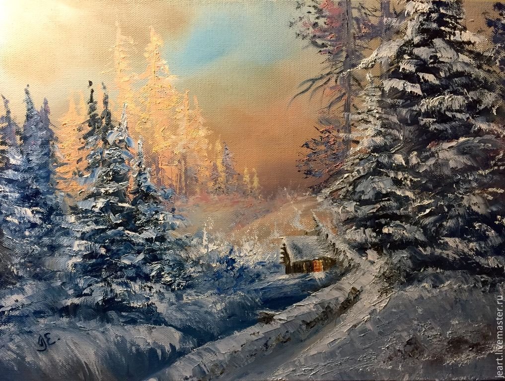 Зимний пейзаж маслом для начинающих