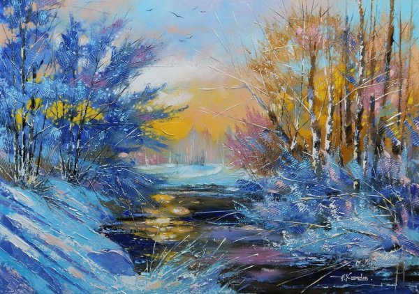 Снежный пейзаж маслом